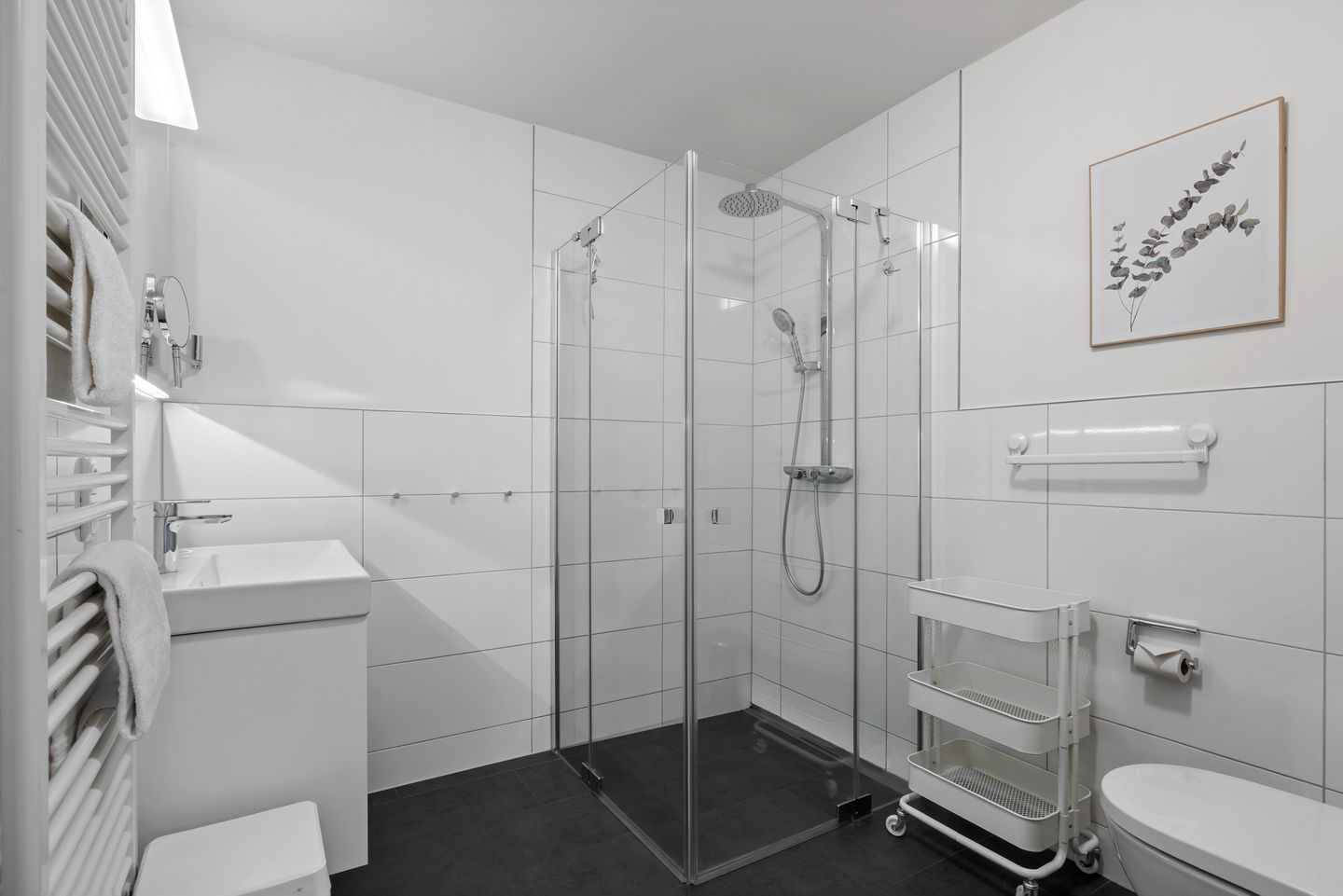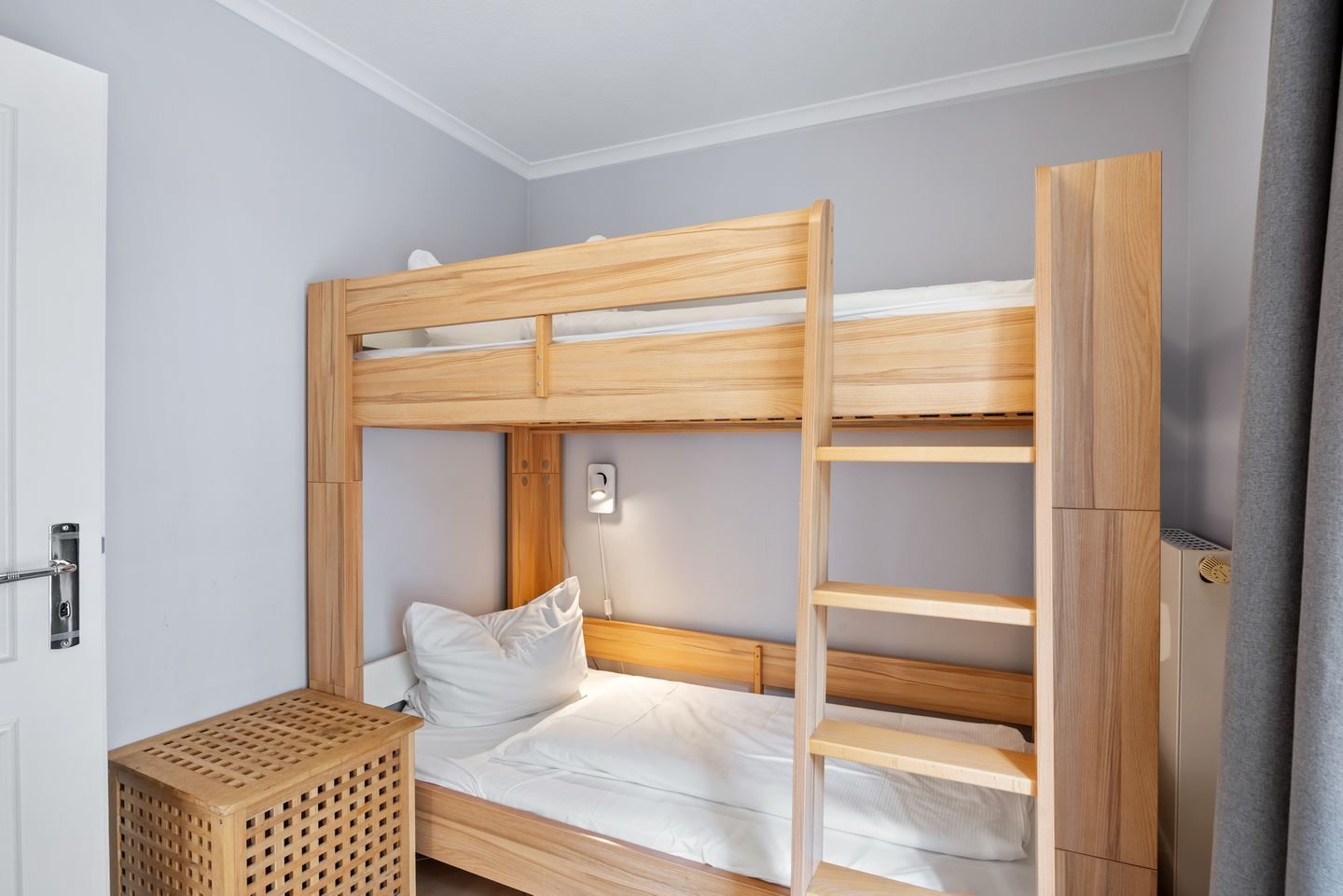 Der Komfort des durchgängig gefliesten Nichtraucher-Apartments ergibt sich aus einem Schlafzimmer mit einem Doppelbett und Fernseher sowie ein weiteres Schlafzimmer mit einem Etagenbett. Ein Wohnbereich mit Schlafcouch und Fernseher und angrenzender Terrasse mit Ausblick Richtung Süden und einem Bad mit einer ebenerdigen Dusche und WC. Eine voll ausgestattete offene Küche mit Wasserkocher, Kaffeemaschine, Toaster, Mikrowelle mit Grillfunktion und Geschirrspüler, ein Föhn und eine TV-HiFi-Anlage mit DVD-Player komplettieren euer Feriendomizil.