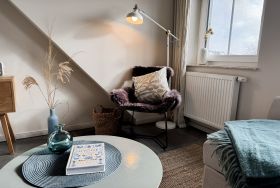 Die modern und liebevoll im skandinavischen Stil eingerichtete Dachgeschoss-Ferienwohnung befindet sich in einer ruhigen Seitenstraße, wenige Gehminuten vom feinsandigen Ostseestrand und vom Zentrum mit Flaniermeile, vielen Restaurants, schönen Geschäften und Bäckereien entfernt.
