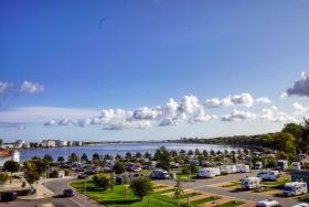 Die Wohnung liegt im Haus P Ferienpark, in der 4. Etage, mit Balkon zur Südostseite, der einen schönen Blick auf den Binnensee, Richtung Yachthafen bietet.