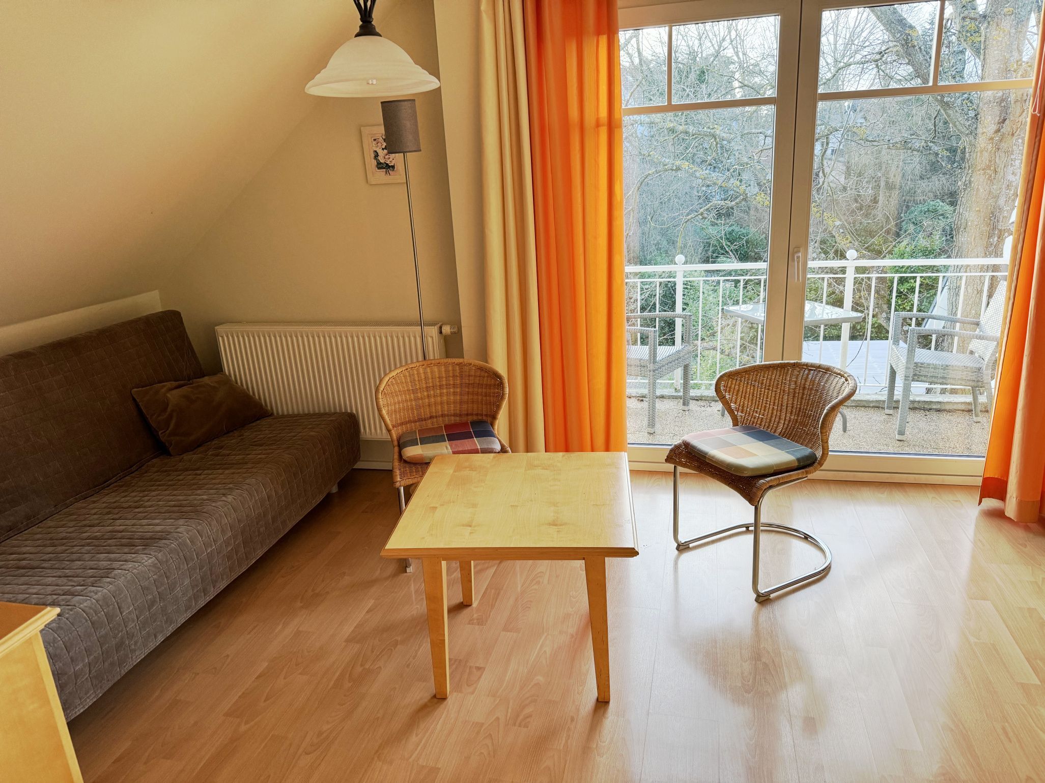 Ihr Ferienquartier gehört zu einer im Jahr 2002 errichteten mediterranen Wohnanlage hinter dem Rathaus von Graal-Müritz. Es ist ganzjährig nutzbar, also mit Heizung ausgestattet. Im Bad befindet sich eine Fußbodenheizung.