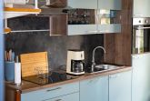 Etage: Der Eingang führt in einen offenen Wohn- und Essbereich, ausgestattet mit einer modernen, voll ausgestatteten Küche mit Induktionskochfeld, Backofen, Spülmaschine und Kühlschrank mit kleinem Eisfach. Der gemütliche Wohnbereich bietet eine ausziehbare Couch für zusätzliche Gäste oder Ihre Kinder. Das Badezimmer ist mit allen nötigen Annehmlichkeiten ausgestattet. Das Highlight ist hier die ebenerdige Regendusche.