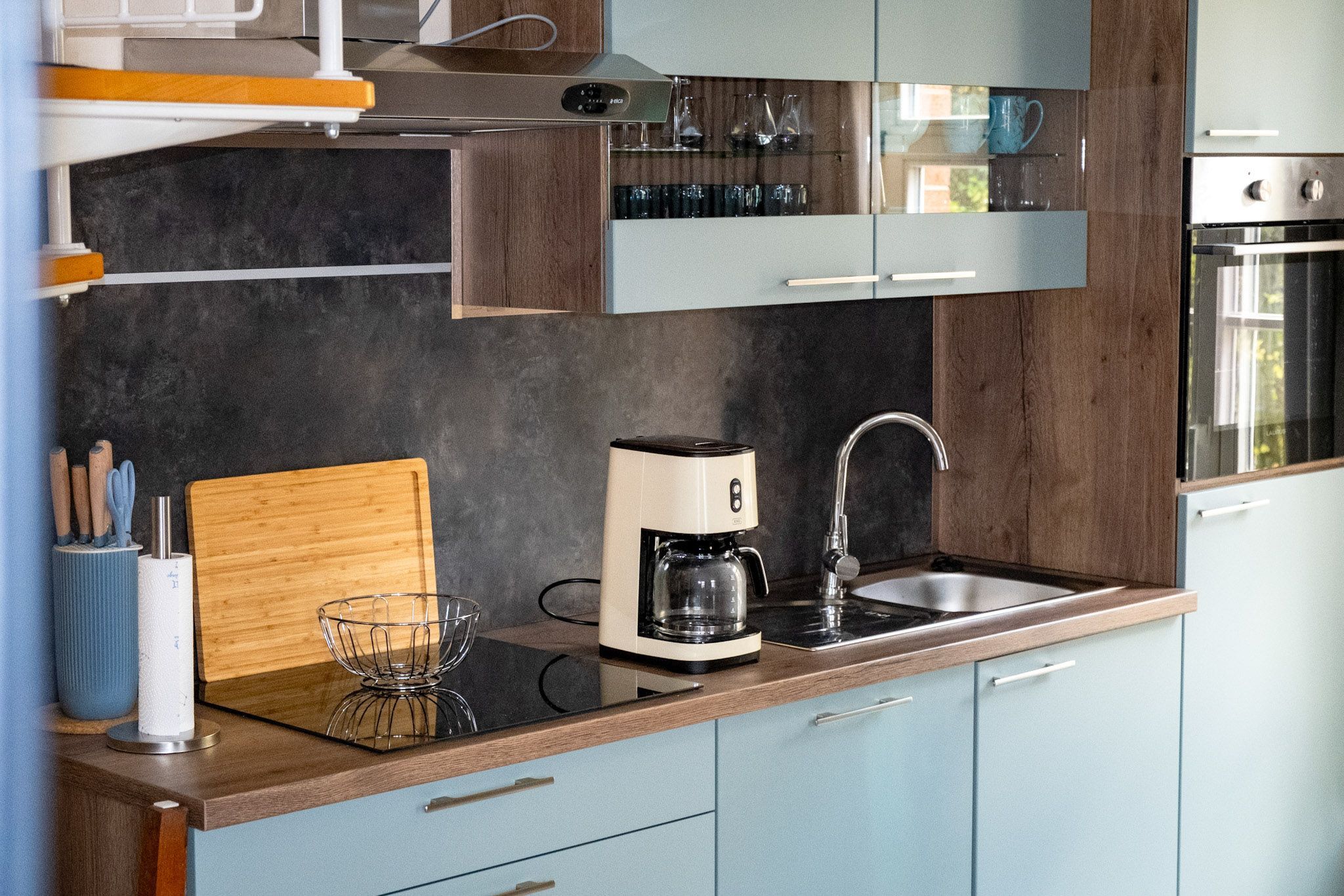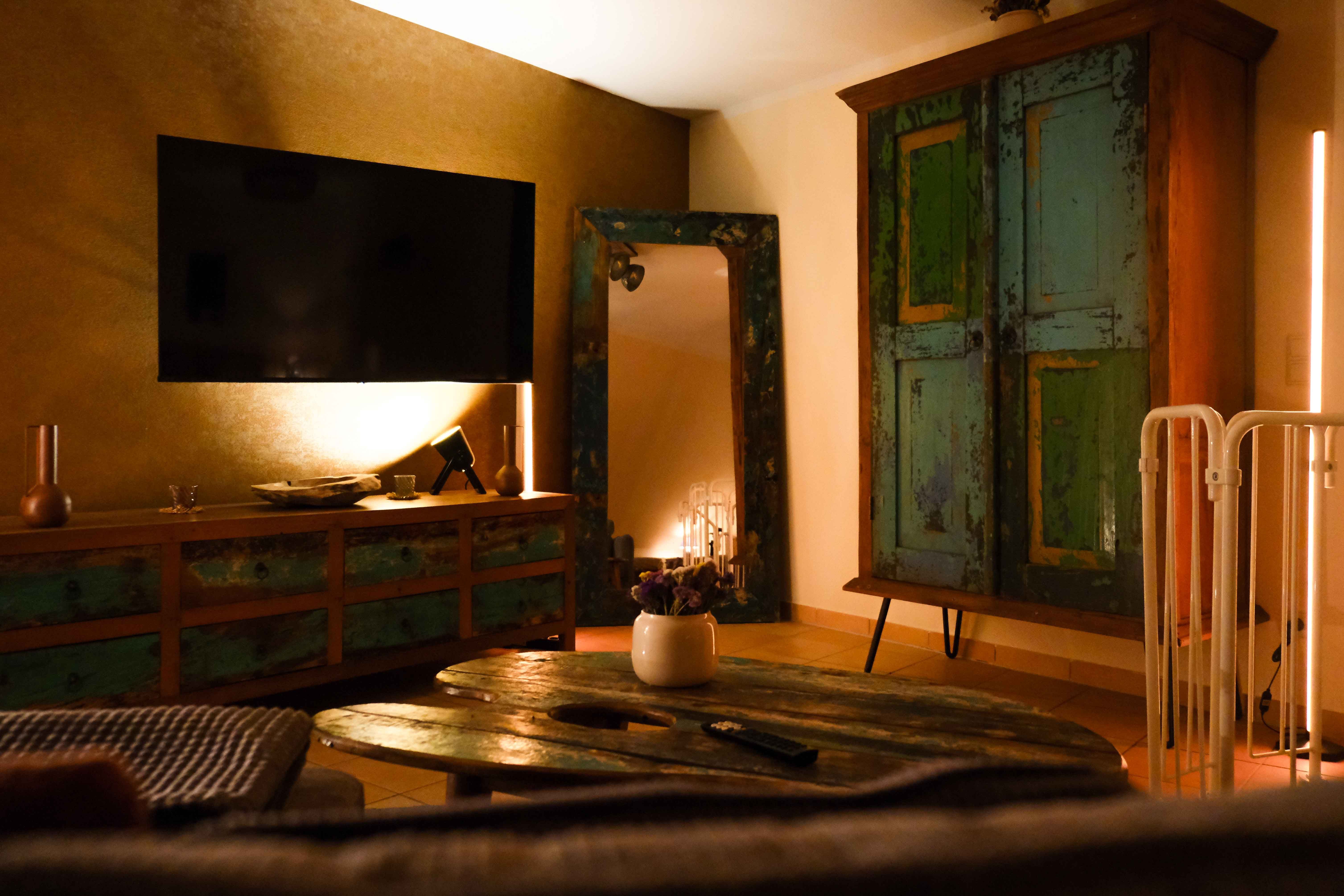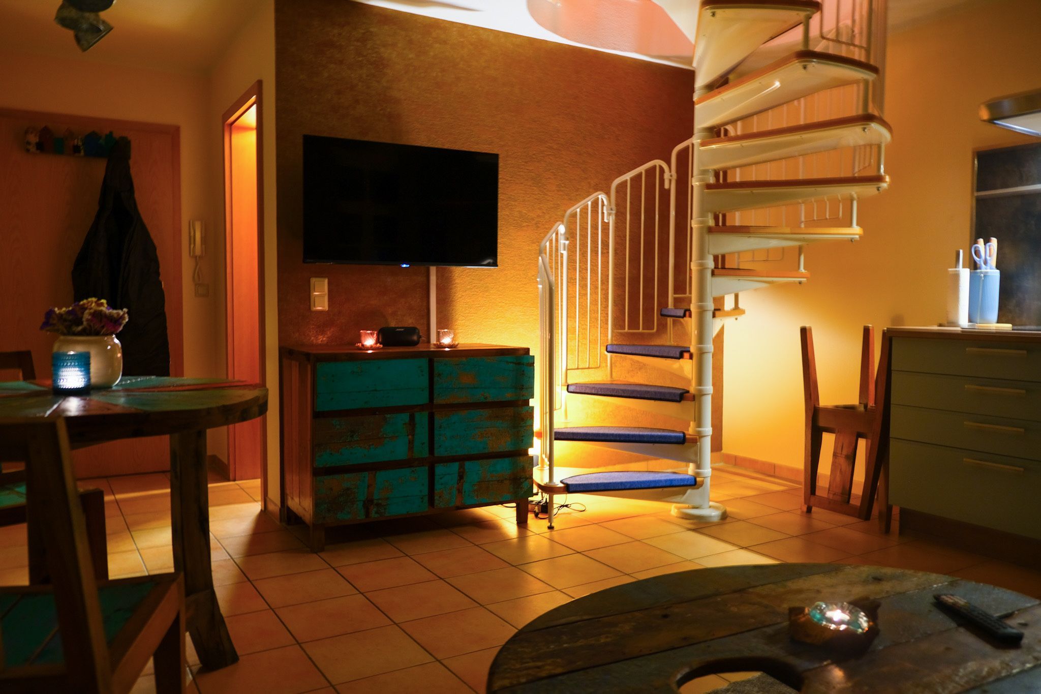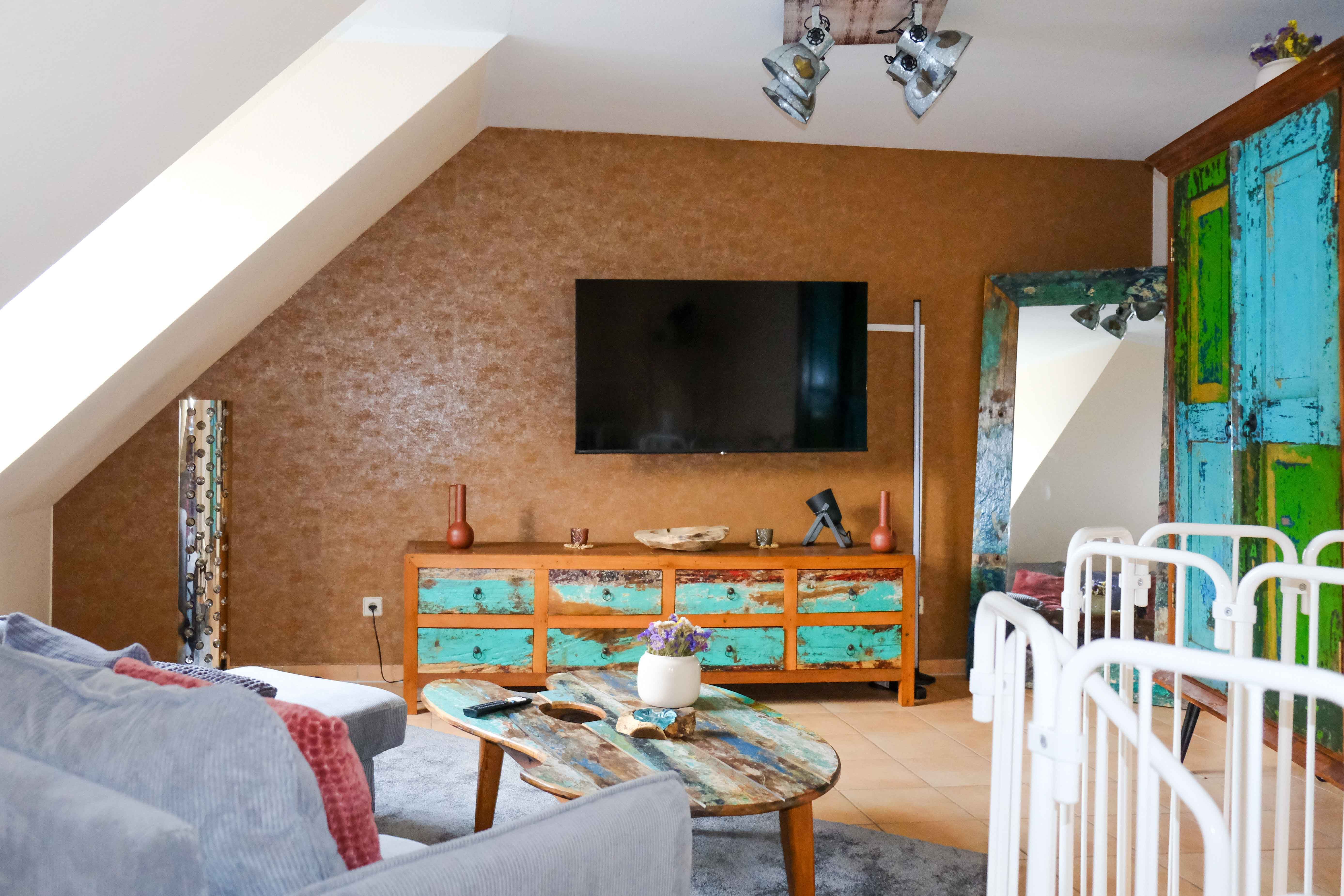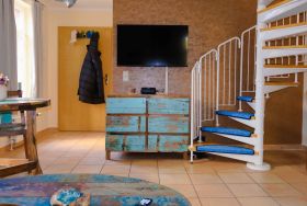 Das Apartment Tinka besticht durch seine ganz besondere Einrichtung. Viele Möbelstücke wurden aus recycelten Schiffsteilen aus Bali, Indonesien gefertigt und in liebevoller Handarbeit zu einzigartigen Einzelstücken verarbeitet. Diese nachhaltigen Möbel verleihen der Wohnung einen ganz besonderen Charme und unterstreichen die Nähe zum Meer. Auf zwei Etagen erwartet Sie eine harmonische Mischung aus Modernität und Naturmaterialien.