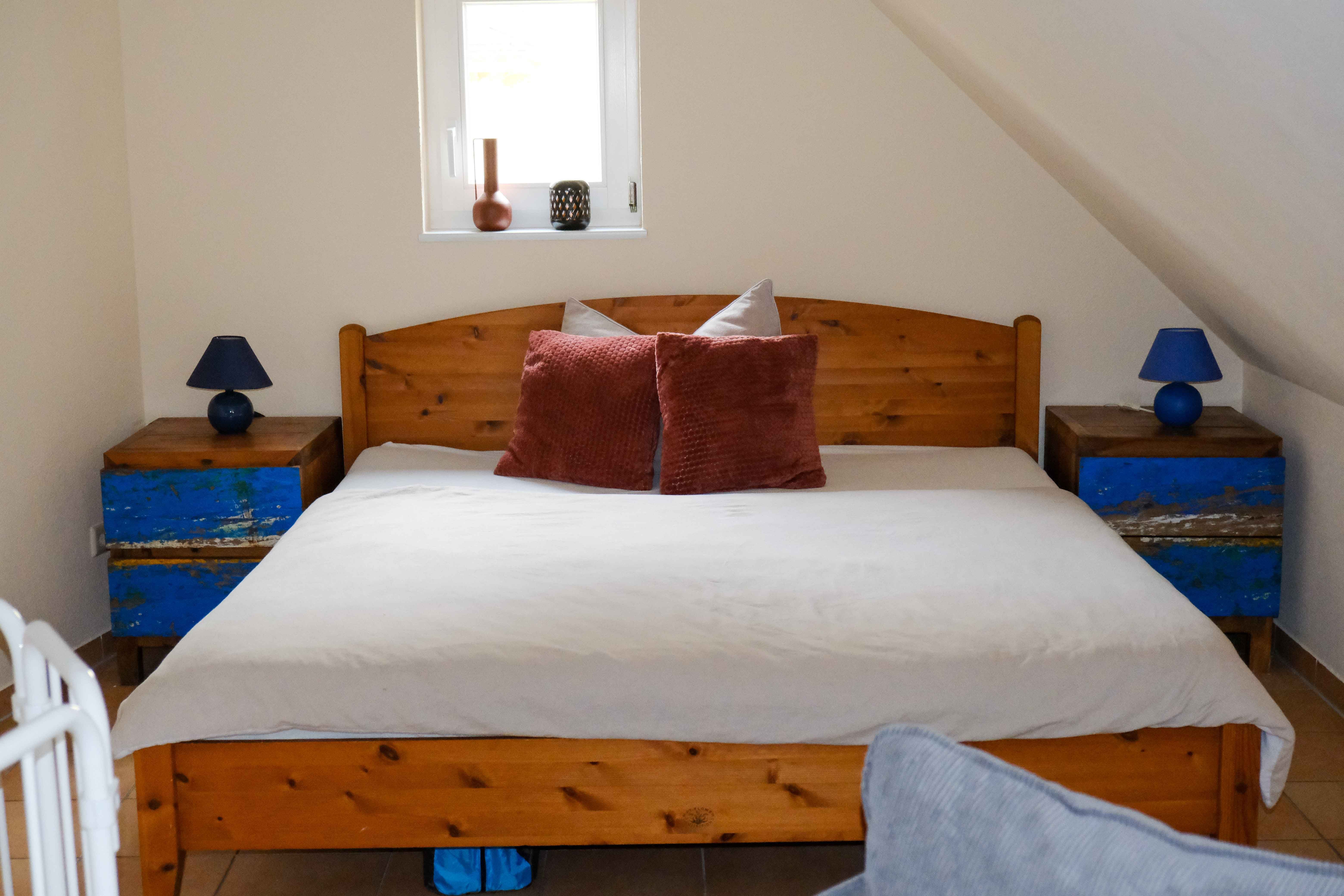 Etage: Das Schlafzimmer mit einem komfortablen Doppelbett lädt zu erholsamen Nächten ein. Ein weiterer, gemütlicher Lounge-Bereich mit 4k-Smart-TV und Couch bietet hier Raum für gemeinsame Zeit in stilvollem Ambiente. Der große Kleiderschrank hat genügend Platz für ihr Gepäck. Hier finden Sie auch ein paar Gesellschaftsspiele wie u.a. Monopoly oder Twister für einige lustige und spannende Spieleabende im Apartment Tinka.