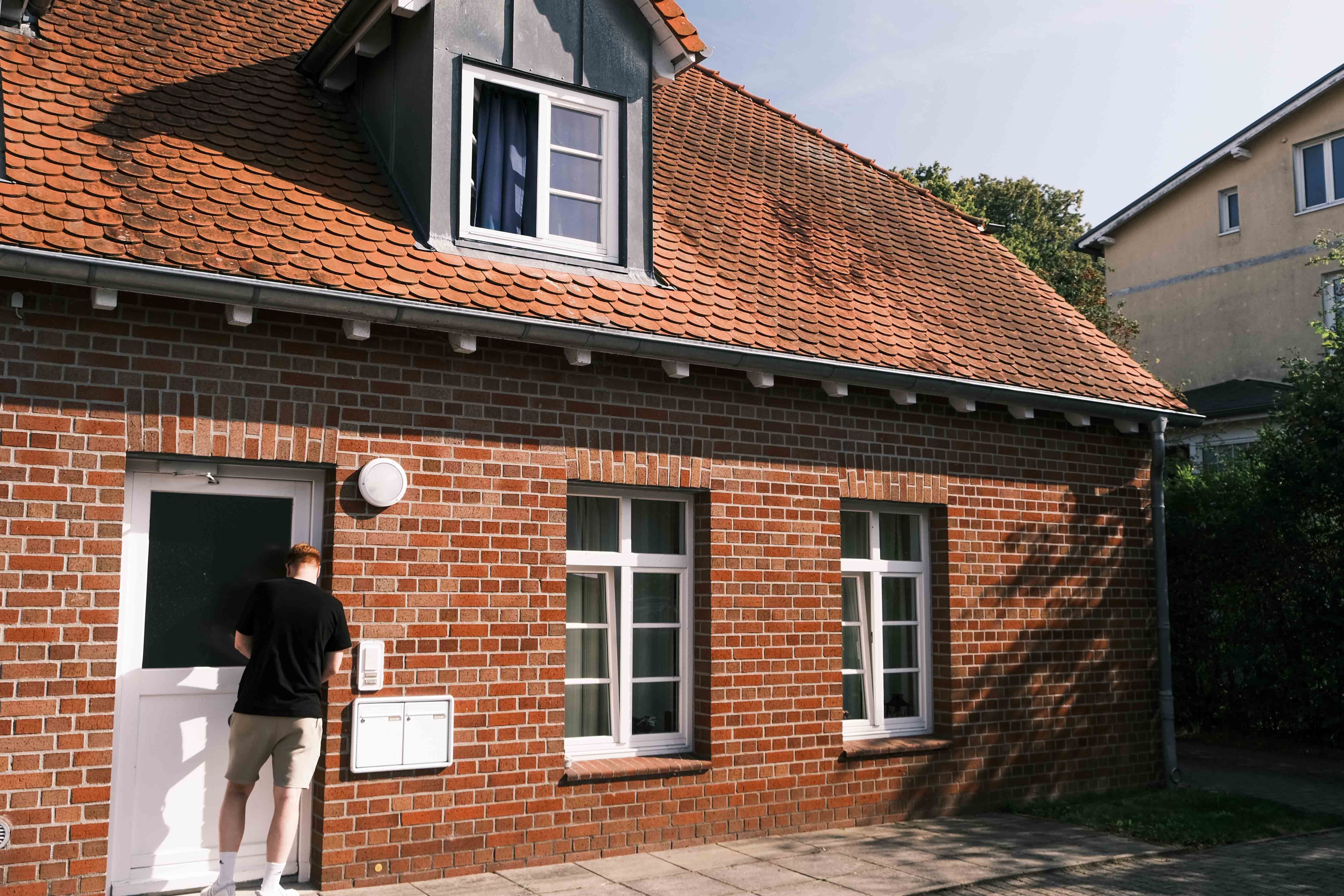 Außerdem gibt es die Möglichkeit die kleine Terrasse vor der Eingangstür und den Garten vor dem Haus (Gemeinschaftsfläche) zu nutzen. Auf dem Garagen-Parkplatz finden Sie hierfür einen Outdoor-Esstisch mit Stühlen und einen Campinggrill aus Edelstahl.