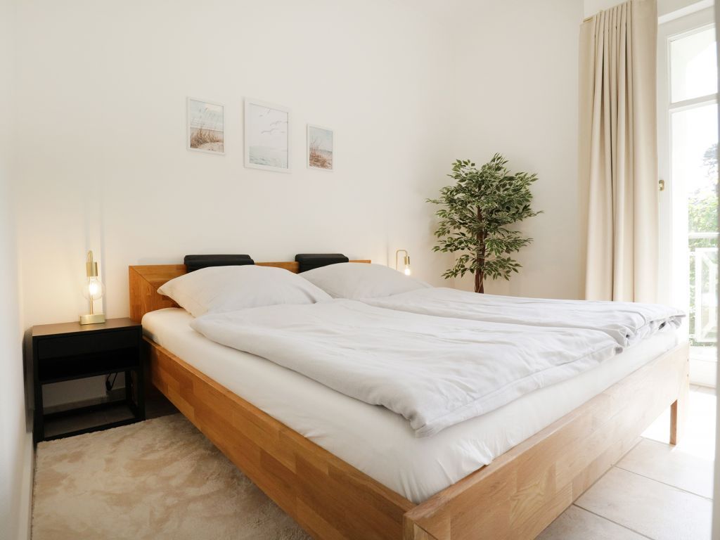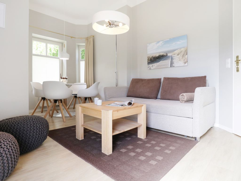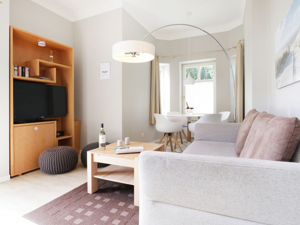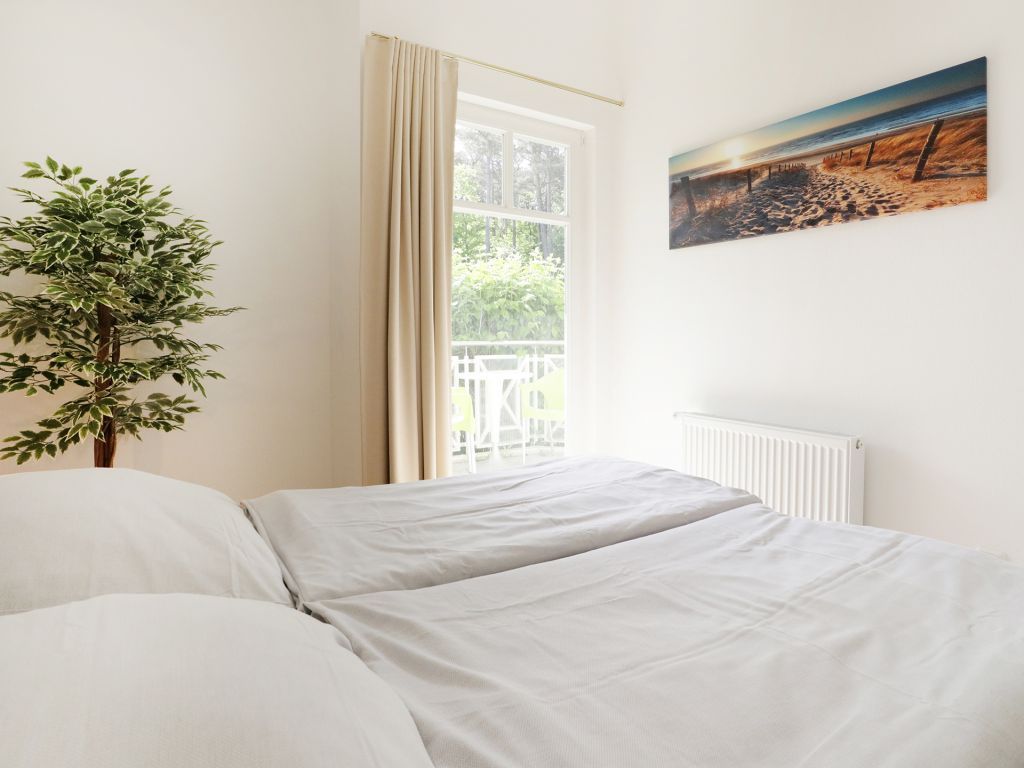 Das schicke Balkon Appartement befindet sich im Hochparterre des Hauses. Es besitzt eine Wohnfläche von ca. 40qm. Die Belegung ist mit max. 3 Personen möglich. Der Wohn-Essbereich ist geschmackvoll möbliert und mit einem Sofa ausgestattet, das in ein Schlafsofa umgewandelt werden kann und somit einen 3. Schlafplatz ermöglicht. Zudem sind ein Esstisch sowie ein Fernseher vorhanden. WLAN nutzen Sie gebührenfrei. Die separate Küche ermöglicht die Eigenversorgung: 2- Plattenherd, Kühlschrank mit integr. Gefrierfach, Kaffeemaschine, Toaster usw. ermöglichen die Zubereitung kleiner Urlaubsmahlzeiten. Vom Wohnraum aus gelangen Sie auf den saisonal möblierten Balkon in Nord-West Lage.