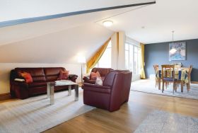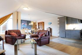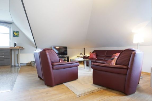 Die behaglich möblierte 2-Zimmerwohnung befindet sich im 2. OG und besitzt eine Wohnfläche von 75qm. Eine Belegung ist mit bis zu 2 Personen möglich. Der helle Wohn-Essbereich überzeugt mit einer bequemen Sofagarnitur und mit einem gemütlichen Esstisch. Ebenso sind Fernseher, DVD-Player, Musikanlage und gebührenfreies WLAN vorhanden. In der offenen Wohnküche können Sie Ihre Urlaubsmahlzeiten zubereiten mit: Ceranherd, Backofen, Dunstabzug, Kühlschrank mit integr. Gefrierfach, Spülmaschine usw. Ihre Mahlzeiten nehmen Sie am Esstisch zu sich, oder Sie genießen die Vorzüge des saisonal möblierten Balkons in nördliche Ausrichtung. Das Appartement bietet ein sehr geräumiges Schlafzimmer mit Doppelbett 1,80m x 2,00m, Kleiderschrank zudem Sitzgelegenheiten. Bei Anreise sind die Betten bereits für Sie bezogen und Handtücher liegen bereit. Für Kleinkinder steht ein Kinderreisebett bereit. Bügeleisen und Bügelbrett sind ebenfalls vorhanden. Das Tageslichtduschbad verfügt über eine Dusche, Waschtisch, Fön und WC. Im Untergeschoss des Hauses kann eine Waschmaschine genutzt werden. Mitgebrachte Fahrräder können im Kellergeschoss untergestellt werden. Haustiere sind nicht gestattet. Nichtraucher.