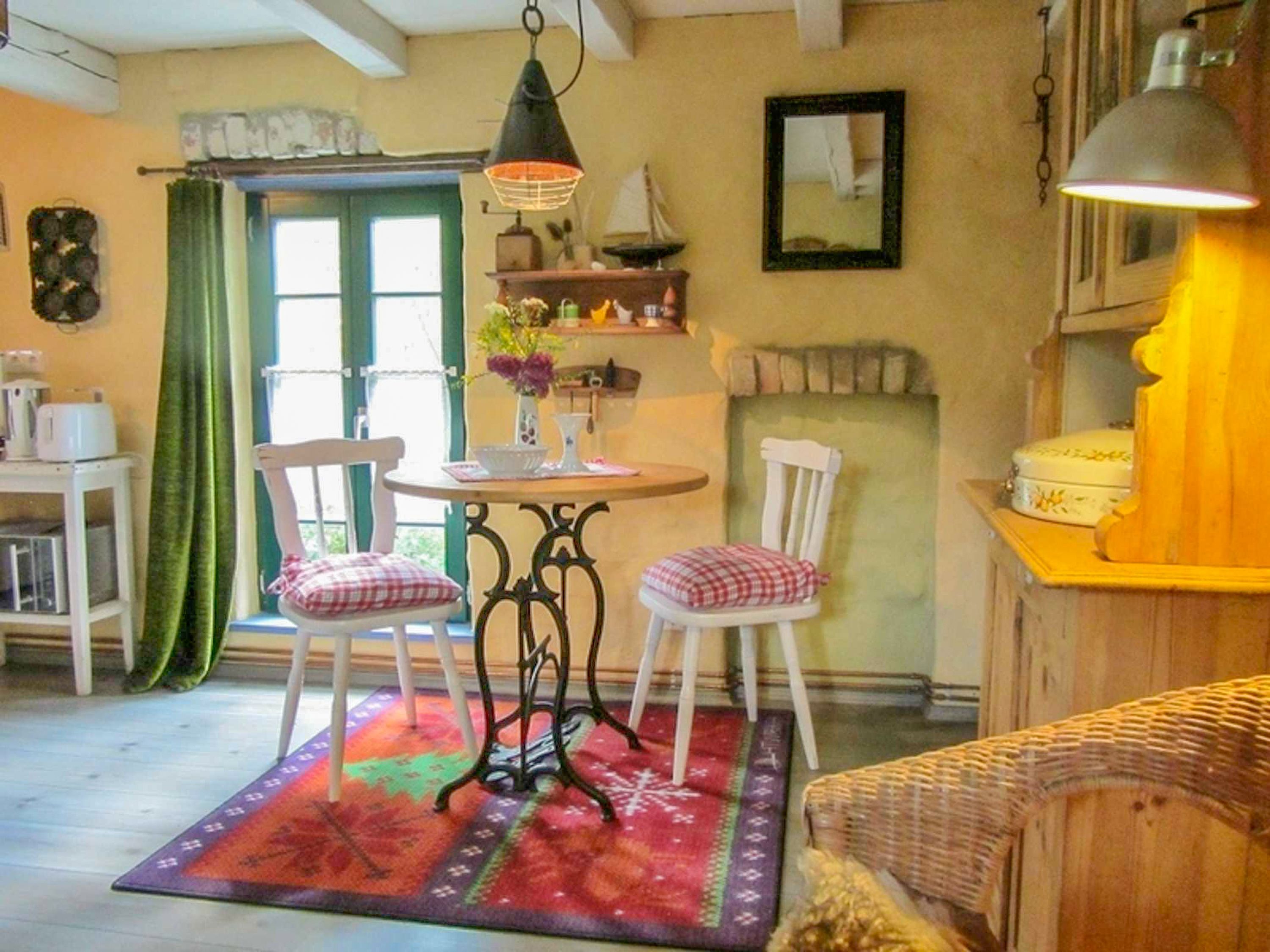 Eingebettet in eine zauberhafte Wiese und umgeben von Natur, erwartet dich die Villa Ilsebill ein liebevoll umgebauter, historischer Stall, der sich in ein einzigartiges Urlaubsrefugium für zwei Personen verwandelt hat. Mit 50 m² Wohnfläche, einer eigenen Terrasse und einem gemütlichen Ambiente ist dies der perfekte Rückzugsort für alle, die das Besondere suchen. Im Erdgeschoss lädt die gemütliche Wohnküche zum gemeinsamen Kochen und Genießen ein. Sie ist mit zwei Herdplatten, einer Mikrowelle, einem Kühl-/Gefrierschrank, Kaffeemaschine, Toaster und Wasserkocher ausgestattet perfekt für ein entspanntes Frühstück oder ein selbstgekochtes Abendessen. Direkt daneben befindet sich das Bad mit Dusche und WC, das dir nach einem langen Tag in der Natur eine erfrischende Auszeit bietet. Über eine Sambatreppe gelangst du ins Dachgeschoss, das mit seiner offenen Gestaltung und den sichtbaren Holzbalken eine ganz besondere Atmosphäre schafft. Hier findest du eine gemütliche Sitzecke mit zwei Sesseln, einen TV und dein kuscheliges Doppelbett (150x200) perfekt, um zur Ruhe zu kommen und die Seele baumeln zu lassen. Draußen wartet deine private Terrasse mit eigenem abgeschlossenen Garten, die dich mit Blick ins Grüne begrüßt. Ob du den Tag mit einem heißen Kaffee in der Morgensonne beginnst oder den Abend bei einem Glas Wein ausklingen lässt hier ist Entspannung garantiert.