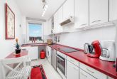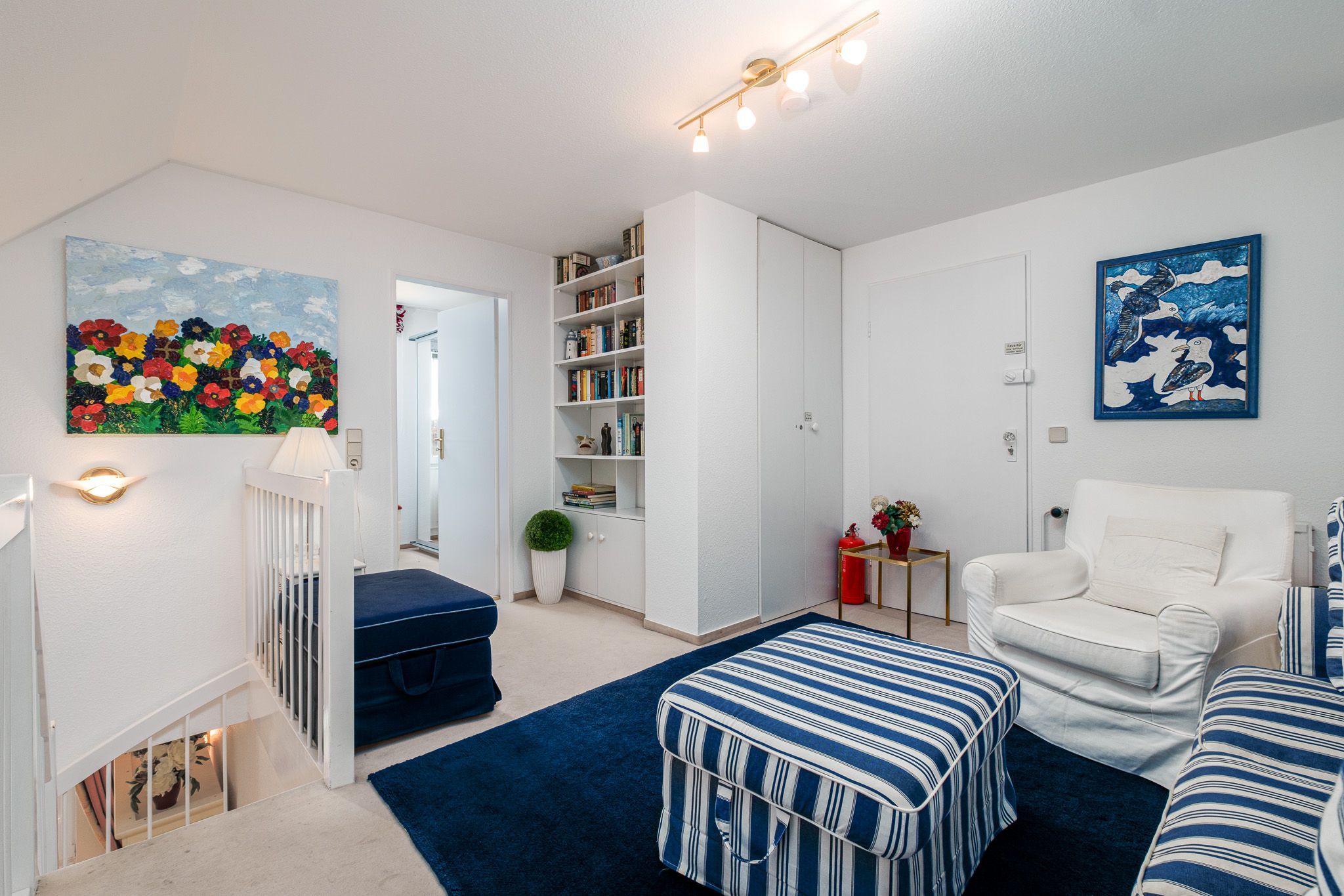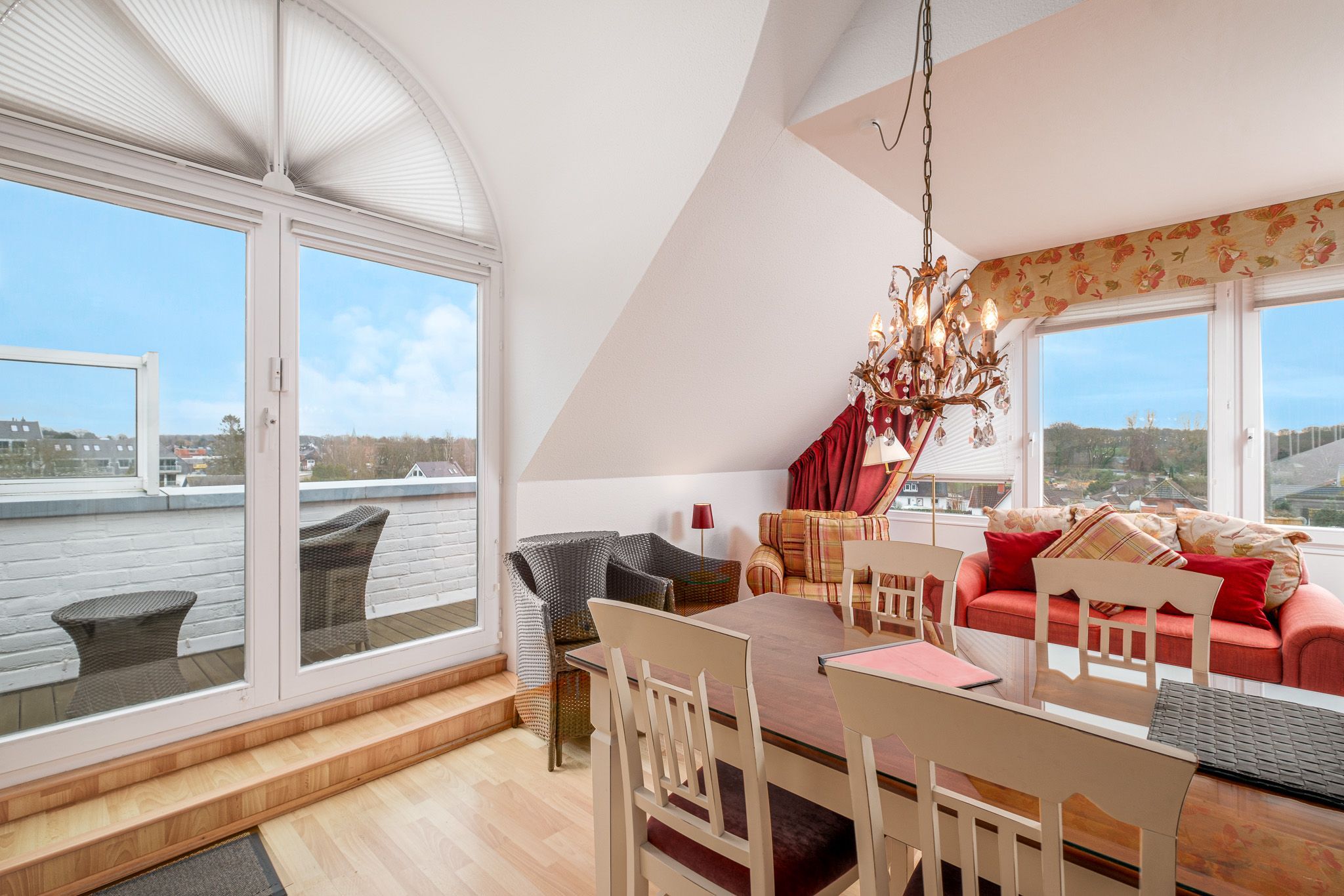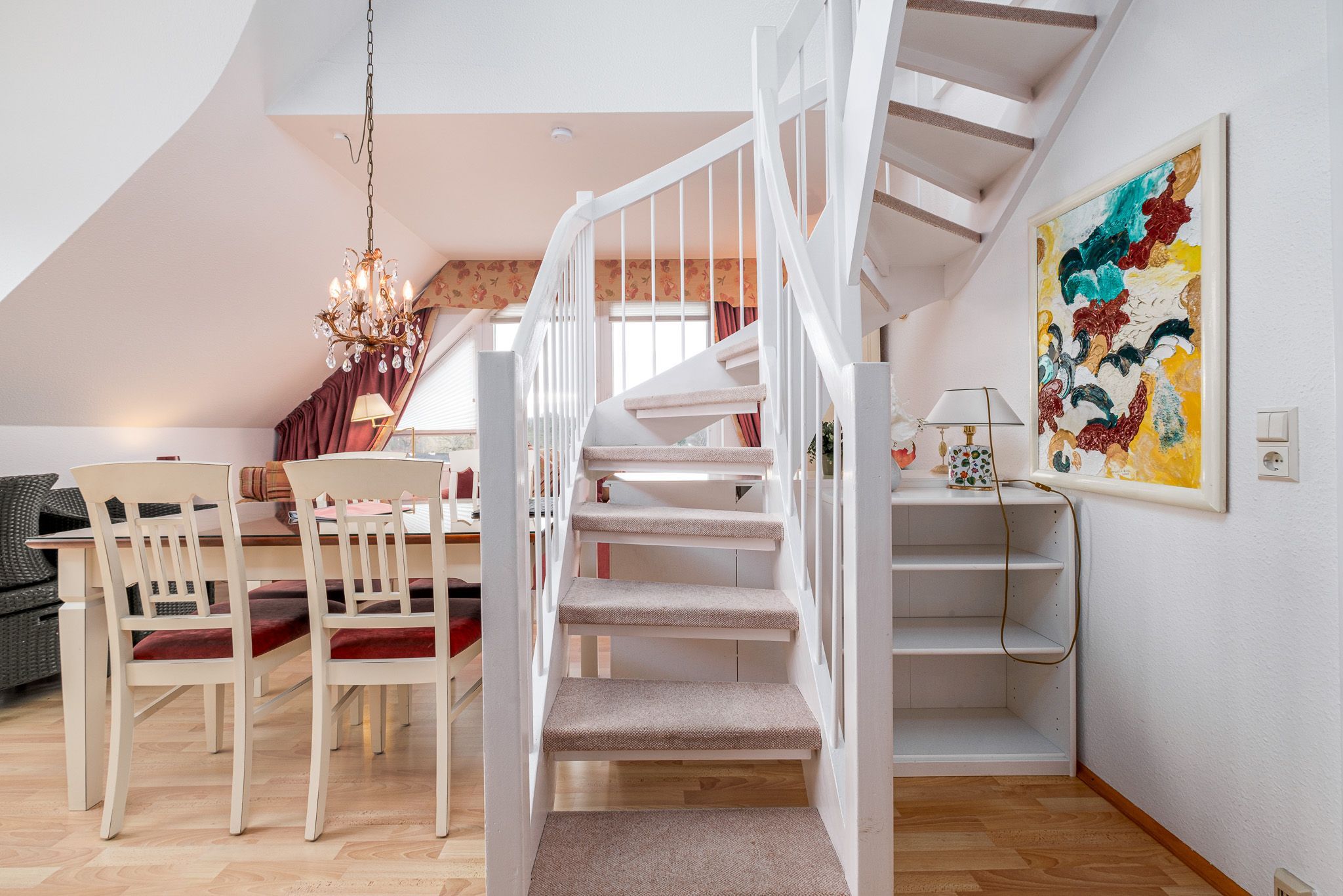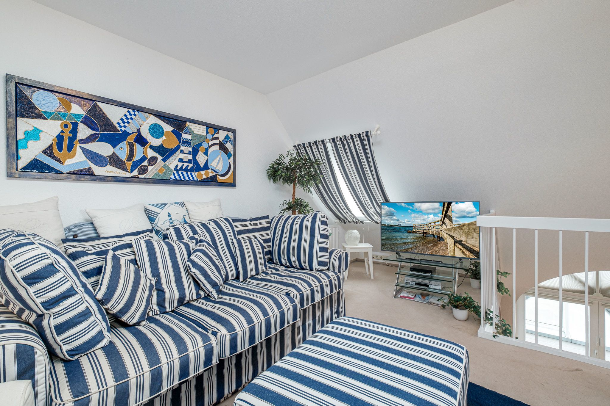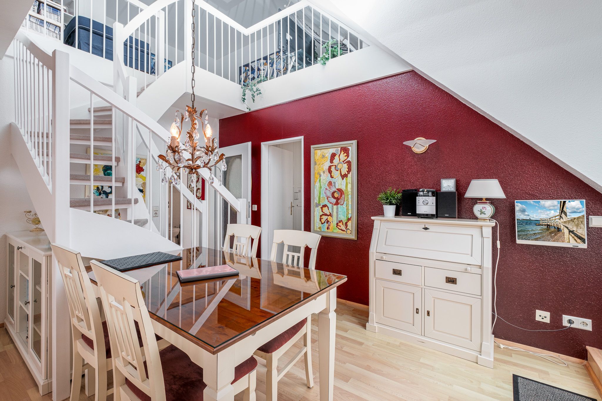 In der hellen und gemütlich eingerichteten 65m² großen Maisonettewohnung Nr. 46 im 3. OG wohnen Sie in ihrem Urlaub auf 2 Etagen mit bis zu 3 Personen. In der unteren Etage befindet sich ein Wohnraum mit Essecke, der auch ideal für ausgelassene Spieleabende geeignet ist.