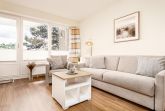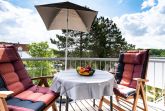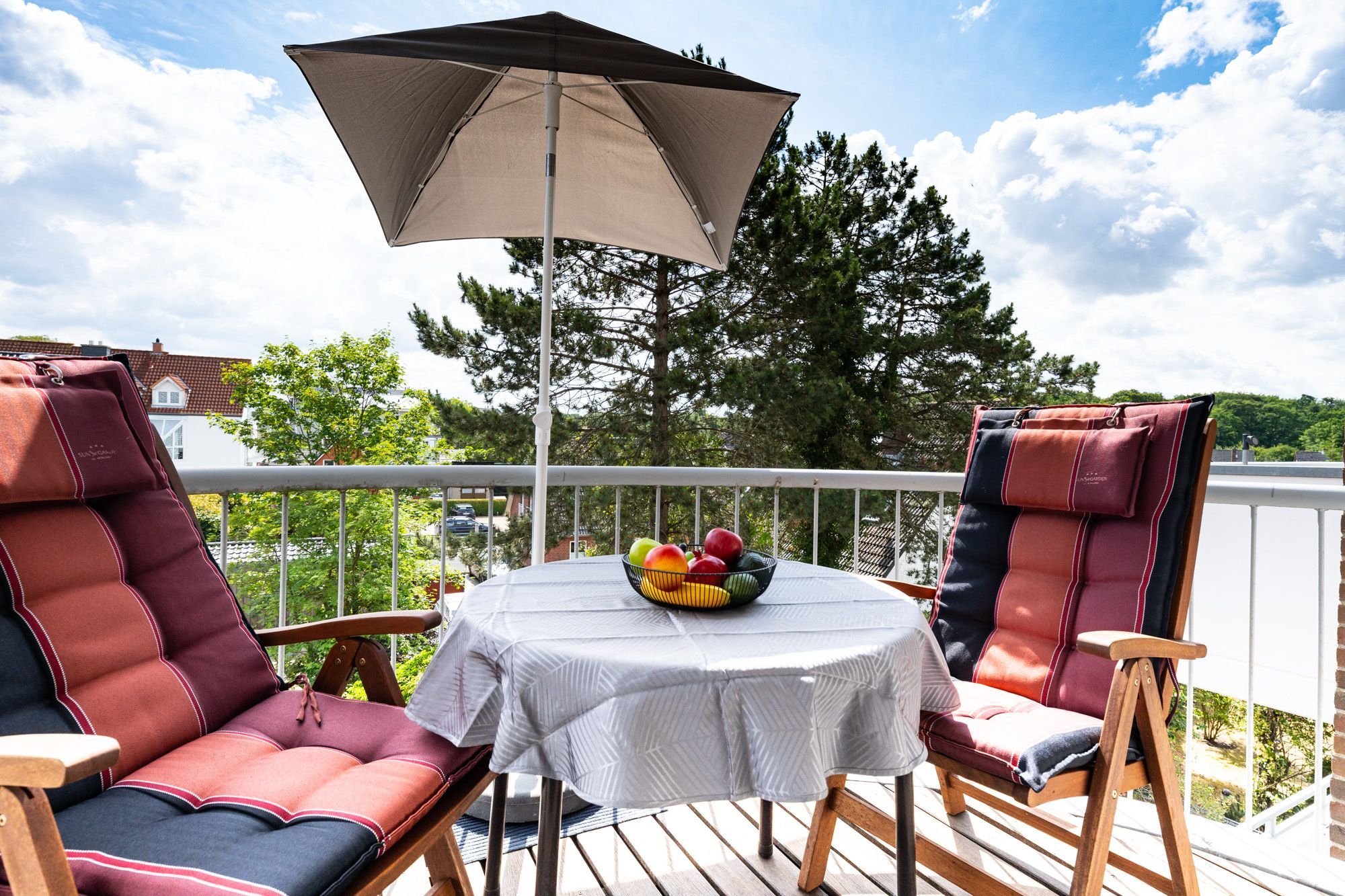 Vom Wohnzimmer aus gelangen Sie auf den großzügigen Balkon mit Ost-Ausrichtung, wo Sie morgens den Sonnenaufgang bei einer heißen Tasse Kaffee oder Tee genießen und sogar das schöne Blau der Ostsee erblicken können.