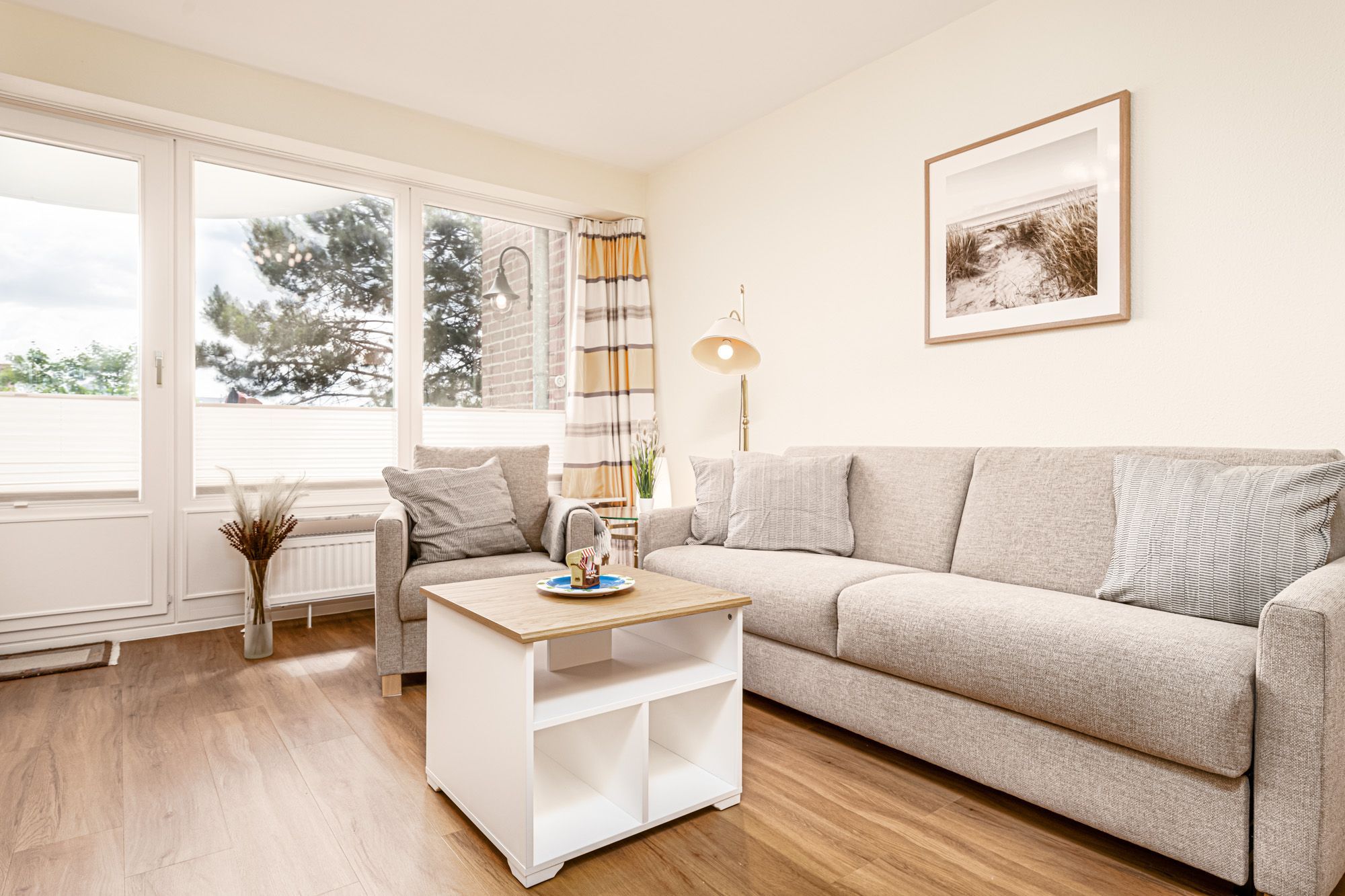 Beim Betreten des in 2023 frisch renovierten Appartements Nr. 29 stehen Sie im Flur, von dem aus alle weiteren Räume abgehen. Auf der rechten Seite befindet sich die voll ausgestattete Küche, die kaum Wünsche offen lässt. Ein Ceranfeld mit Backofen und Mikrowelle setzen Ihnen kaum Grenzen beim Zubereiten leckerer Speisen. Geradeaus gelangen Sie zum hell und freundlich eingerichteten Wohnzimmer, welches über eine Essecke und einen schönen Wohnbereich mit Schlafsofa mit Federkernmatratze (160 cm x 200 cm) verfügt.
