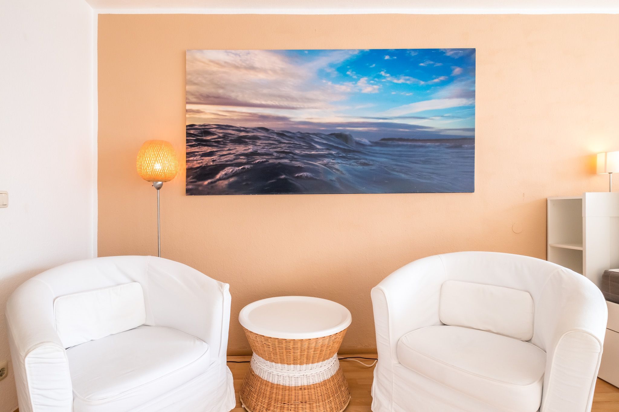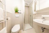 Ein modernes Duschbad, eine Diele und ein möblierter Balkon in Süd-West-Lage runden das Angebot dieser Ferienwohnung ab.