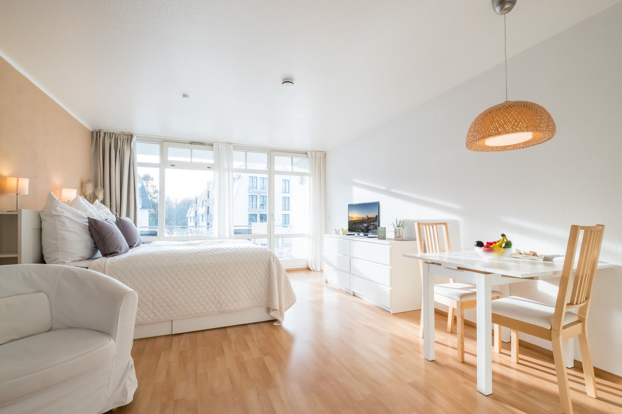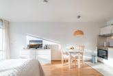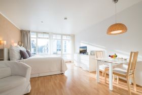 Das 1-Zimmer Appartement Nr. 21 im Strandhotel ist in der 1. Etage gelegen und es erwartet Sie eine modern eingerichtete Niendorf Ferienwohnung für max. 2 Personen, die über einen Balkon in Süd-West-Lage verfügt. Der Wohn-Schlafraum in diesem Urlaubsdomizil ist mit einem bequemen Doppelbett ausgestattet und verfügt über einen Flachbild-TV und einen kleinen Essbereich. Die offene Küche verfügt über ein 2-Feld-Ceranfeld, Kaffeemaschine und Toaster.