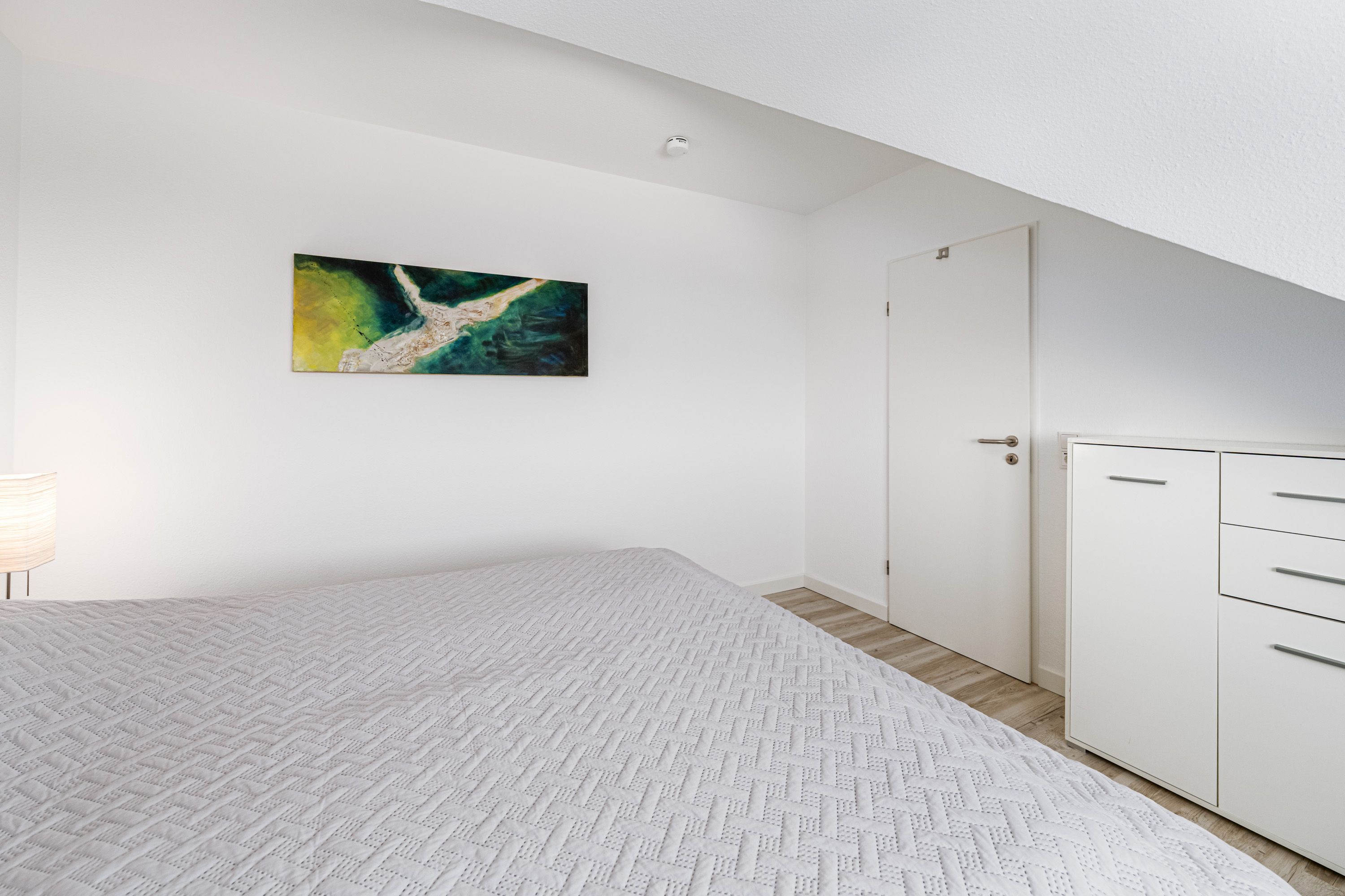 In dem ersten Schlafzimmer erholen sich bis zu 2 Personen auf dem bequemen Boxspringbett (180 cm x 200 cm). Das zweite Schlafzimmer ist mit zwei Einzelbetten (je 90 cm x 200 cm) ausgestattet.