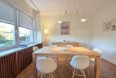 Das helle Esszimmer mit großem Esstisch lädt zu gemeinsamen Mahlzeiten und geselligen Abenden ein.