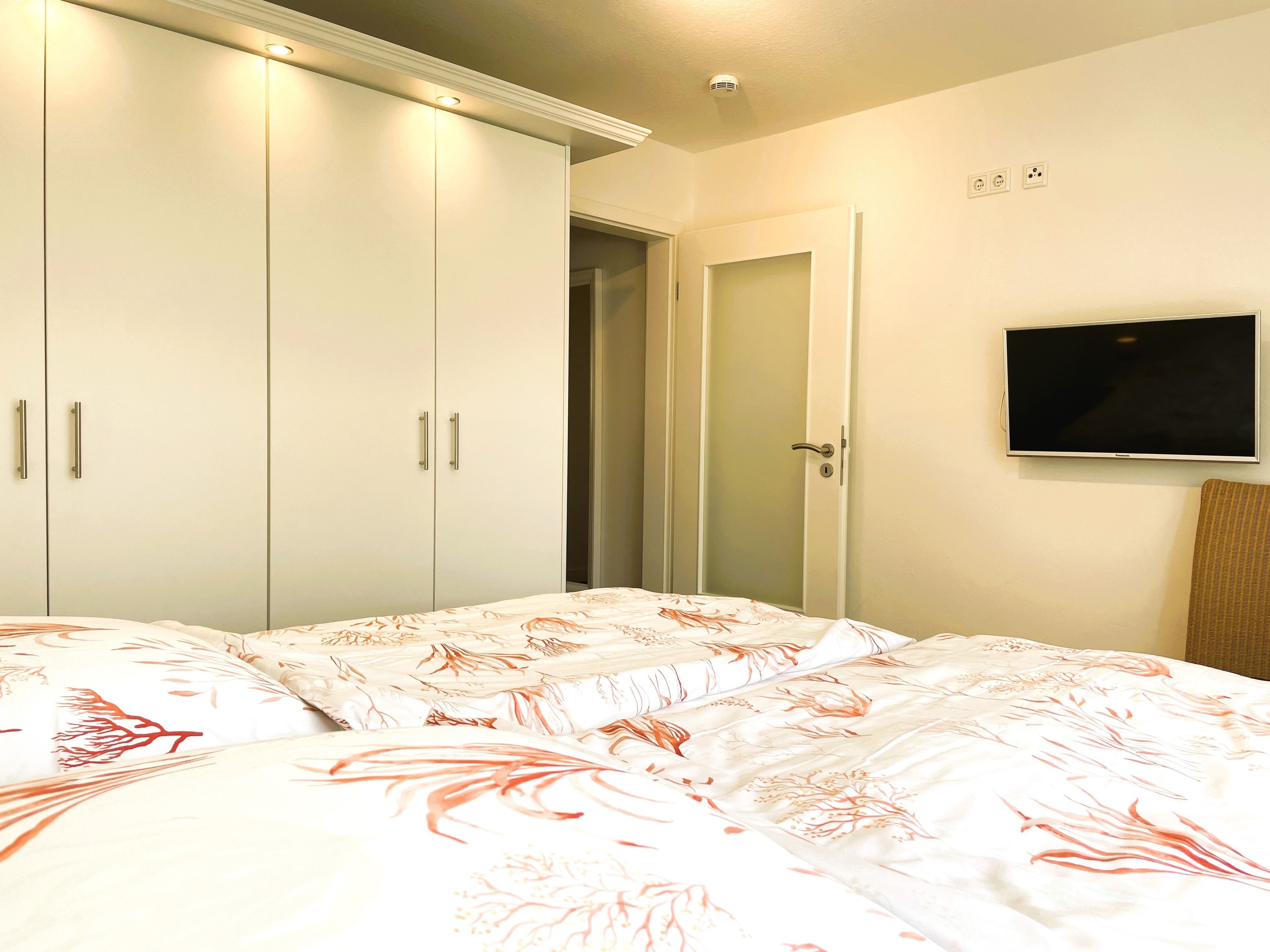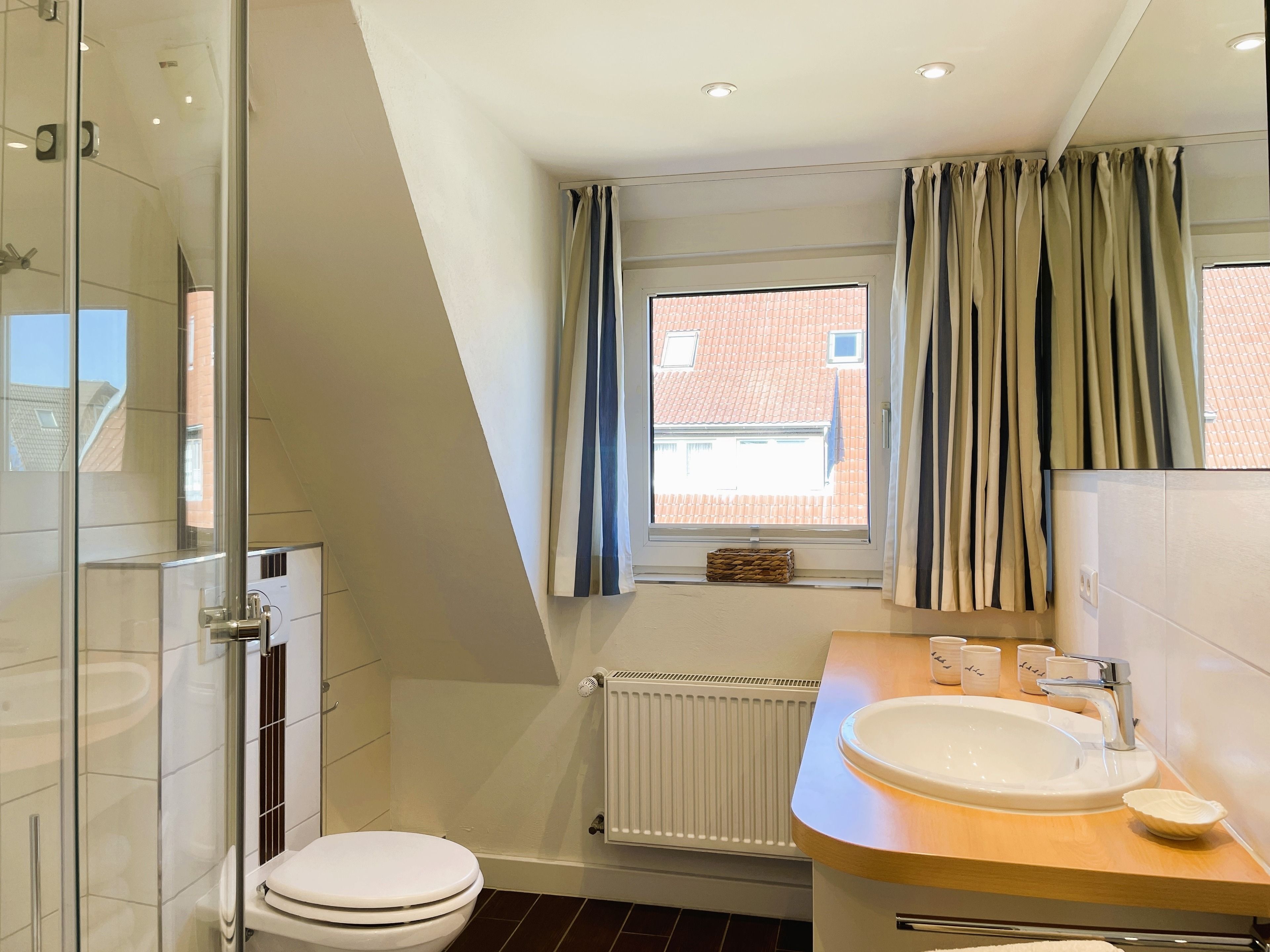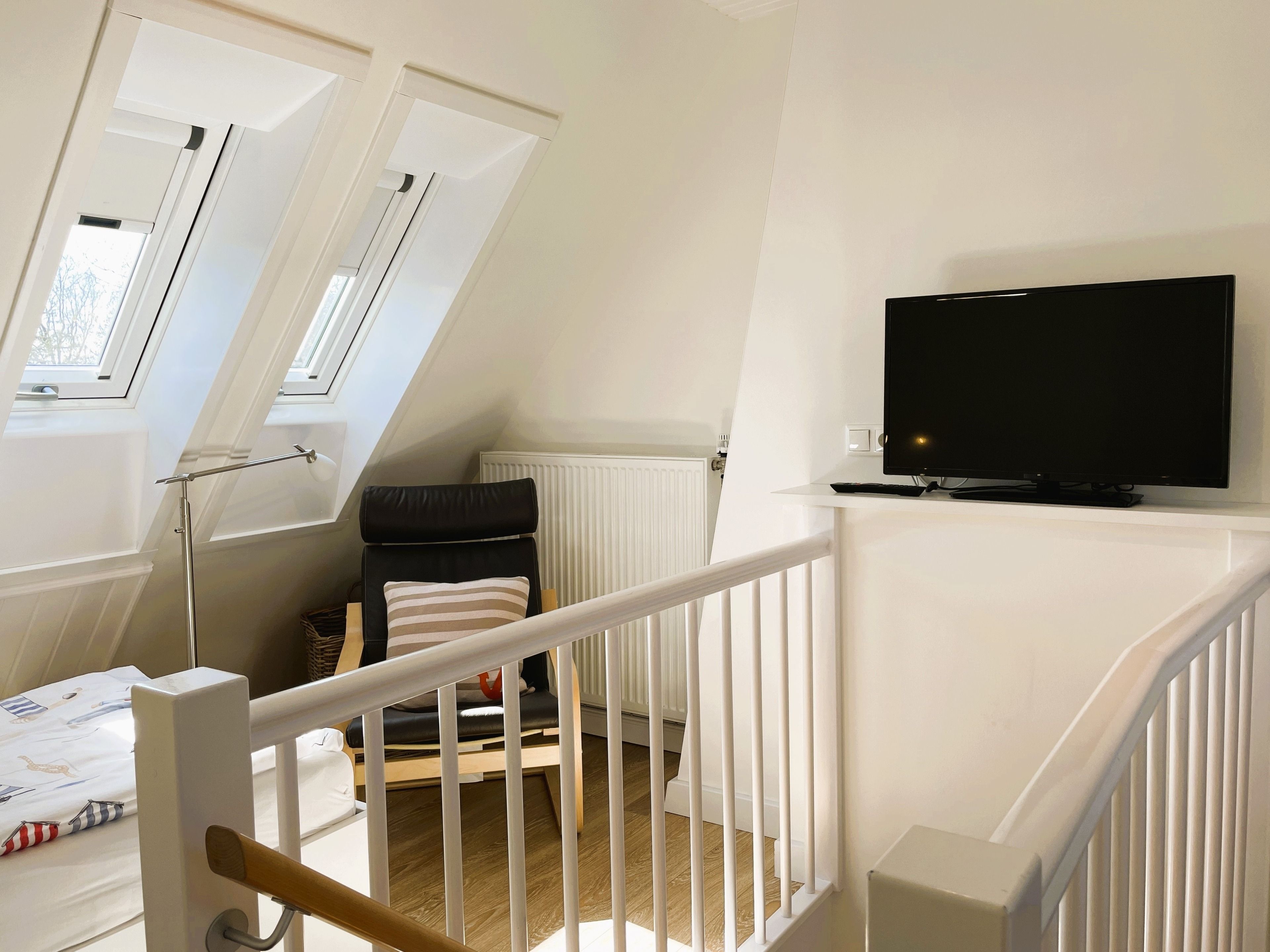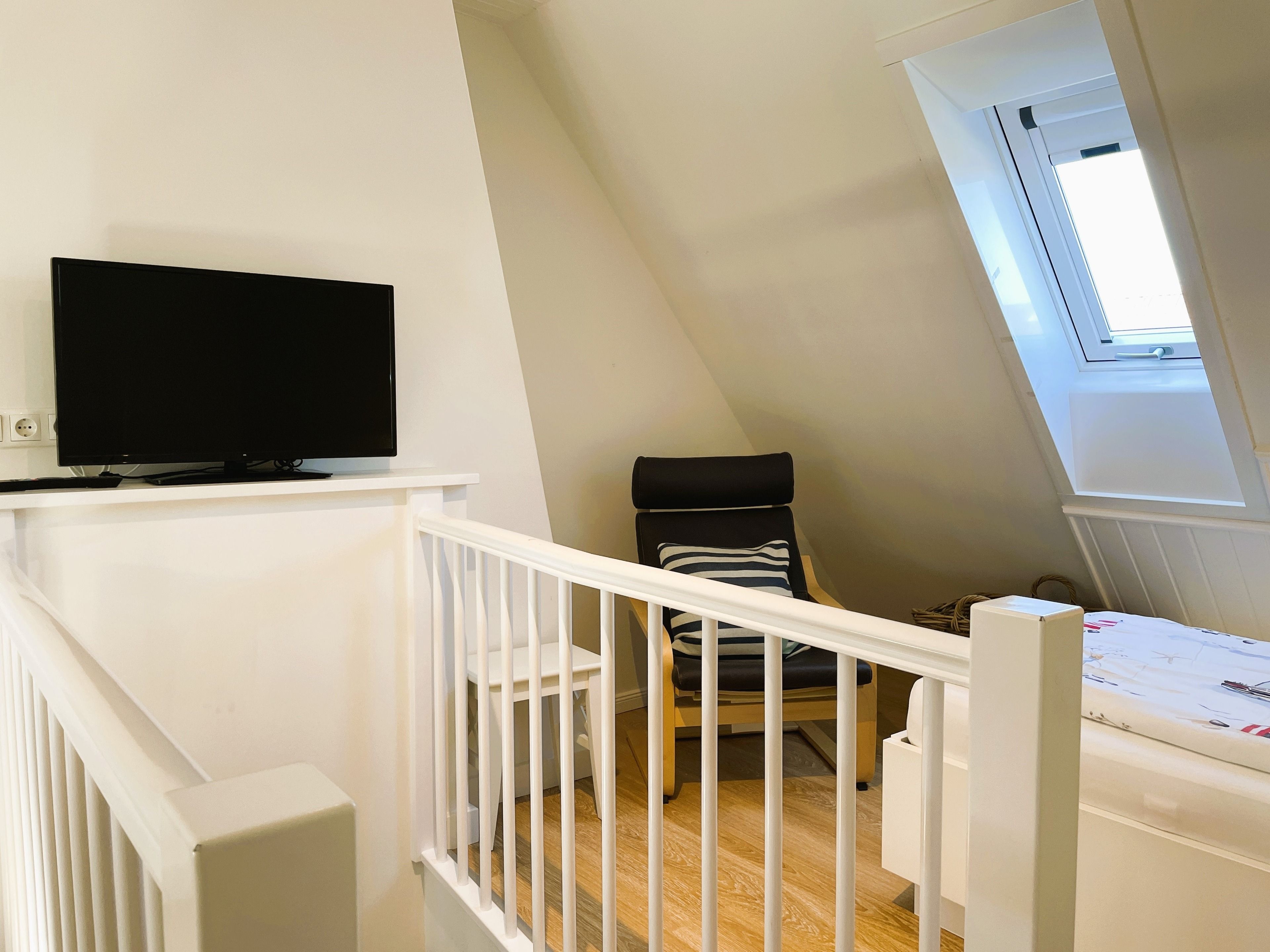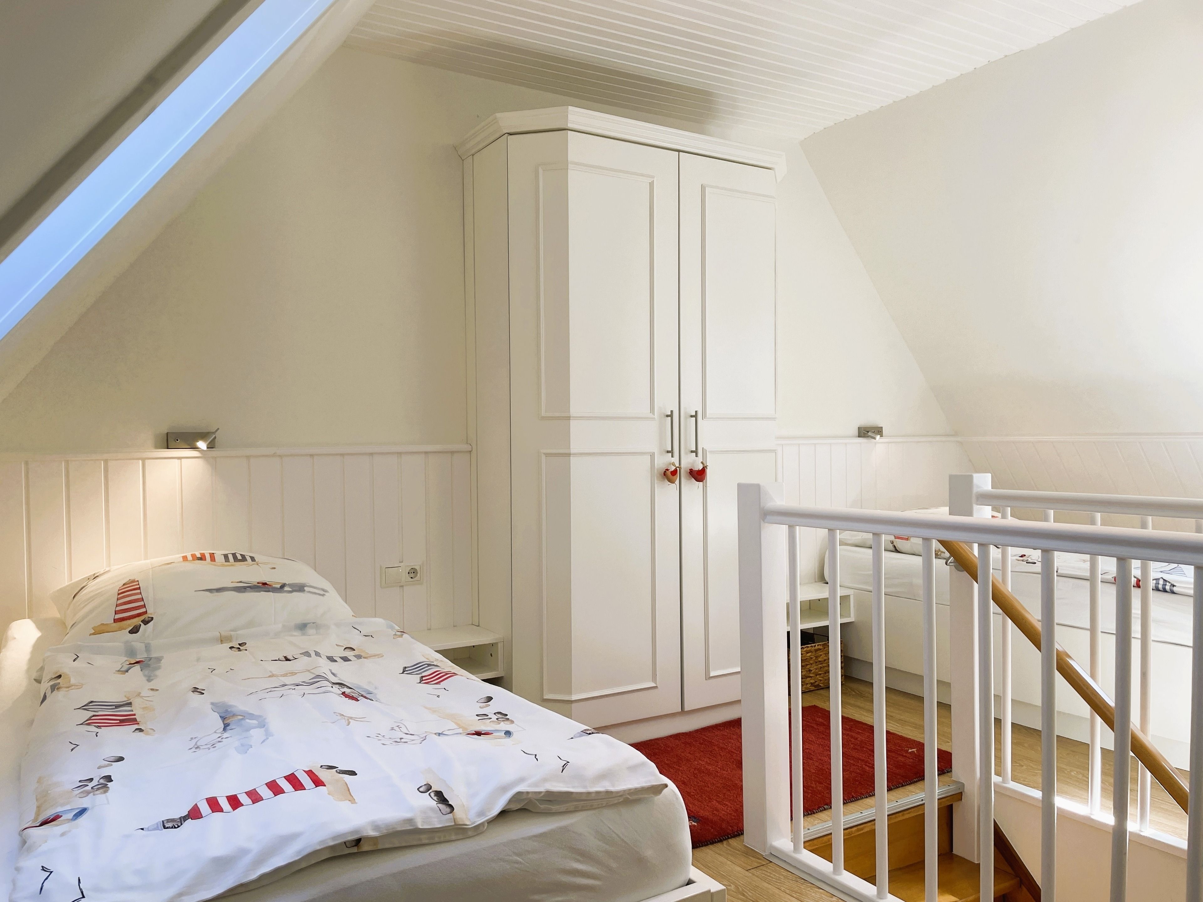 Entdecken Sie Ihren Traumurlaub in der exquisiten Ferienwohnung Leuchtturm auf der malerischen Insel Föhr! Diese charmante Unterkunft im Herzen von Wyk bietet Ihnen den perfekten Rückzugsort für bis zu 4 Personen. Verteilt über vier Etagen erwartet Sie ein herrliches Domizil: Im Hochparterre genießen Sie die hochwertige Einbauküche und das gemütliche Wohnzimmer mit Parkettboden. Eine Etage höher finden Sie ein geschmackvolles Duschbad mit ebenerdiger Dusche, ein separates Gäste-WC sowie das Elternschlafzimmer mit Doppelbett, während im Dachgeschoss das zweite Schlafzimmer mit zwei Einzelbetten das ideale eigene Reich für Kinder ist. Im Souterrain steht Ihnen neben einem zweiten Bad mit ebenerdiger Dusche ein Lesezimmer als Rückzugsort mit direktem Zugang zur Terrasse und zum kleinen Garten zur Verfügung, ideal für entspannte Stunden im Freien. Unser Leuchtturm lässt keine Wünsche offen: Moderne Technik wie Flachbild-TV sowohl im Wohnzimmer, in den beiden Schlafzimmern und im Leseraum sowie eine Musikanlage und WLAN sorgen für Unterhaltung. Eine Waschmaschine und ein Trockner sind ebenfalls vorhanden und kostenfrei nutzbar. Zentral und dennoch ruhig gelegen, bietet die Ferienwohnung Leuchtturm den idealen Ausgangspunkt für Ihre Entdeckungstouren auf Föhr. Der kurze Weg zum Strand lädt zu ausgedehnten Spaziergängen und erholsamen Stunden am Meer ein. Erleben Sie unvergessliche Momente in dieser geschmackvoll eingerichteten Ferienwohnung, die mit ihrer hochwertigen Ausstattung und Ihrem Charme begeistert. Ihr Traumurlaub beginnt hier, im Leuchtturm – Ihrem Zuhause auf Zeit!