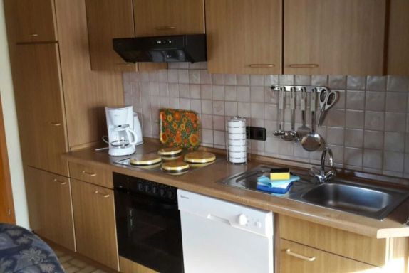 Es erwartet Sie eine gemütlich eingerichtete Ferienwohnung für 5 Personen mit eigenem Eingang und eigenem möblierten Balkon; 2 separate Schlafzimmer, Dusche und WC, Fernseher. Die Küche ist ausgestattet mit E-Herd und Backofen, Kaffeemaschine, Toaster, Wasserkocher und Geschirrspüler. Bei Bedarf kann Wäsche durch den Vermieter gewaschen/getrocknet werden.