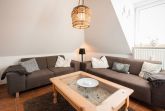 Die Ferienwohnung „Sonnendeck“ im südlichen Bereich des Seebades Koserow bietet auf 84 m² einen idealen Rückzugsort für bis zu vier Personen. Nur 10 Gehminuten trennen die Gäste vom feinsandigen Strand, während das lebendige Zentrum mit Gastronomie und Shoppingmöglichkeiten in etwa 7 Gehminuten erreichbar ist. Die Wohnung verteilt sich über zwei Ebenen im 1. Obergeschoss und punktet mit zwei einladenden Schlafzimmern – eines mit Doppelbett und eines mit zwei Einzelbetten unter dem Dach.