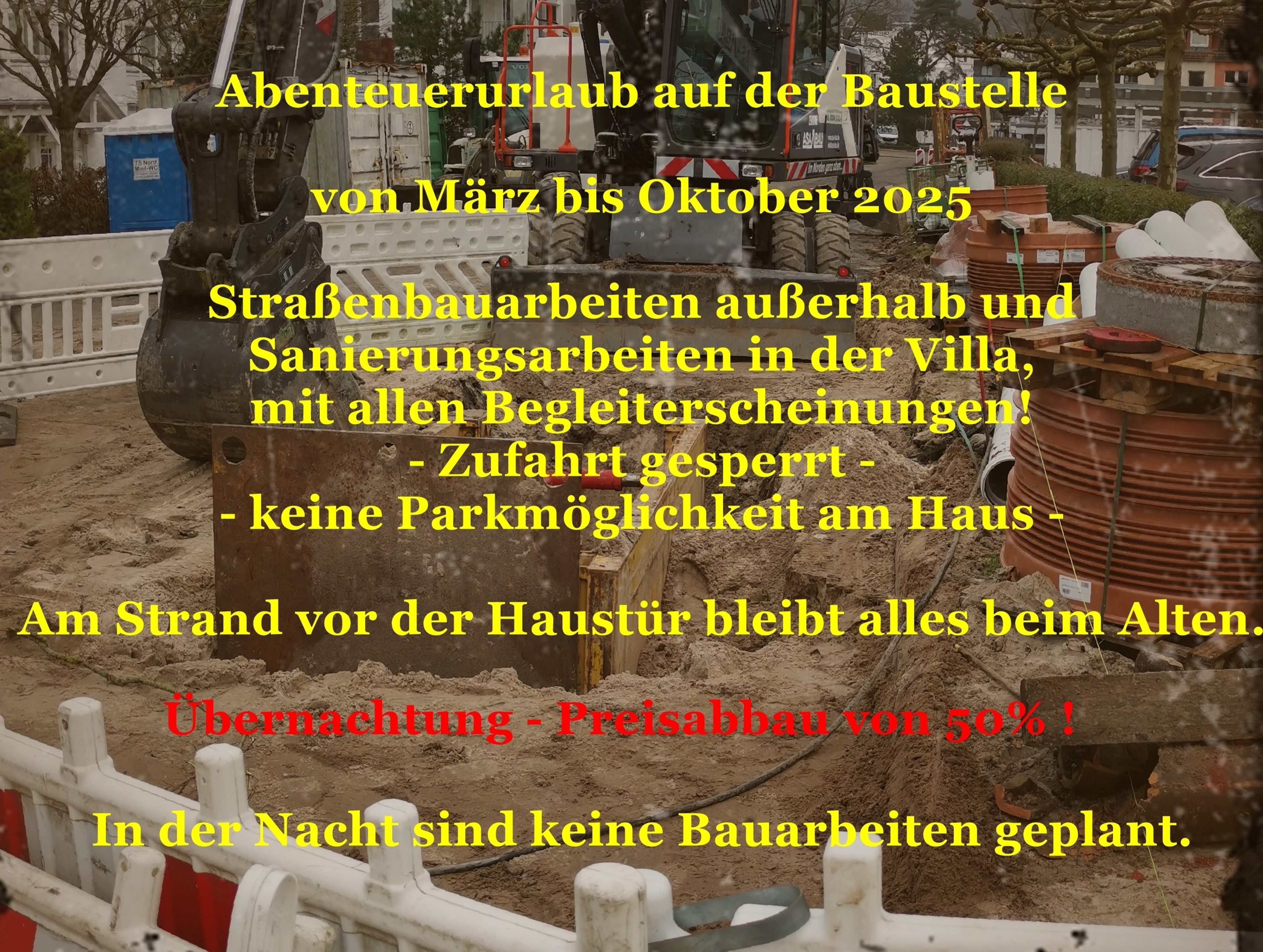 Straßenbauarbeiten außerhalb und Sanierungsarbeiten in der Villa, mit allen Begleiterscheinungen!