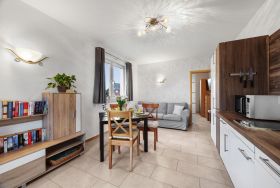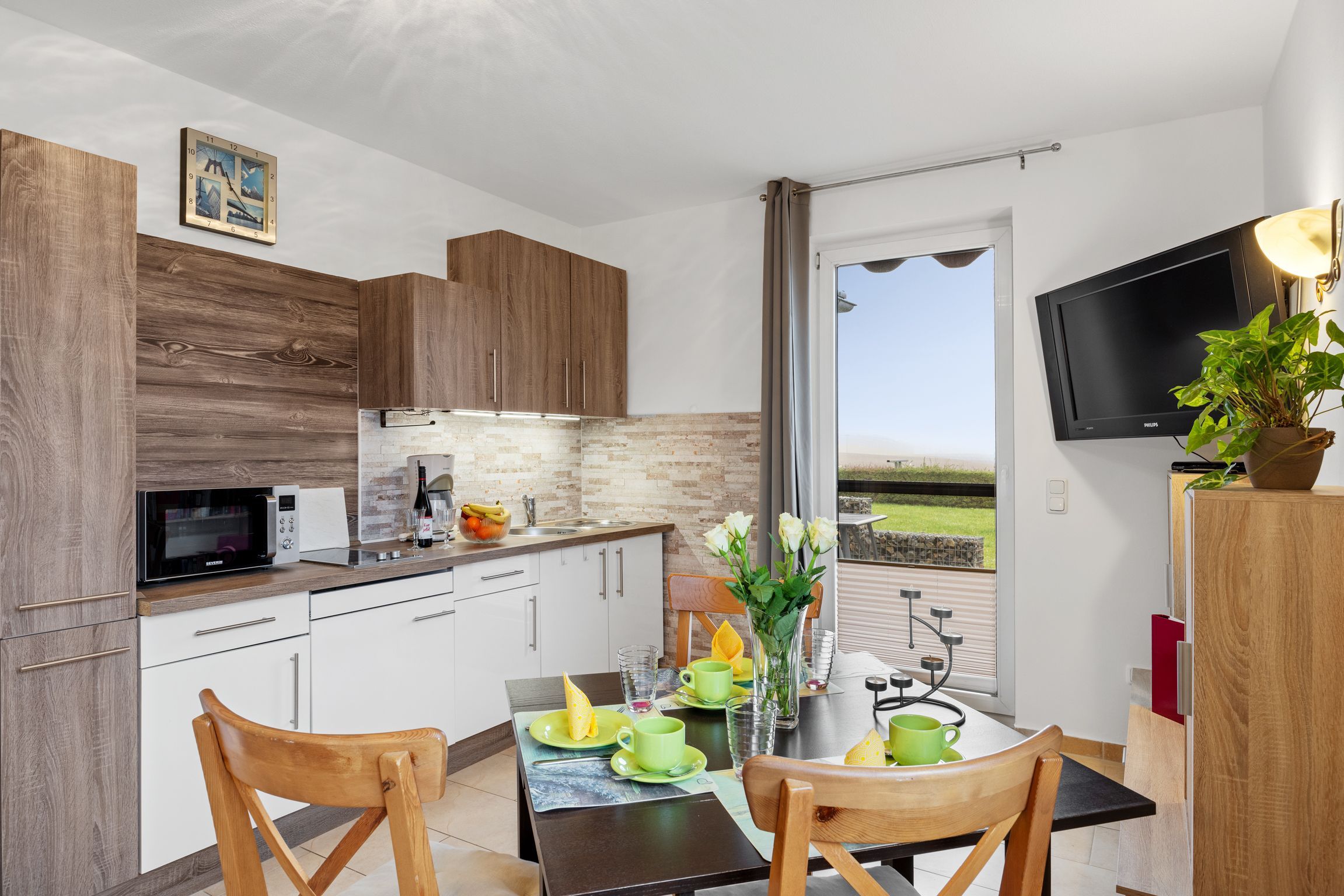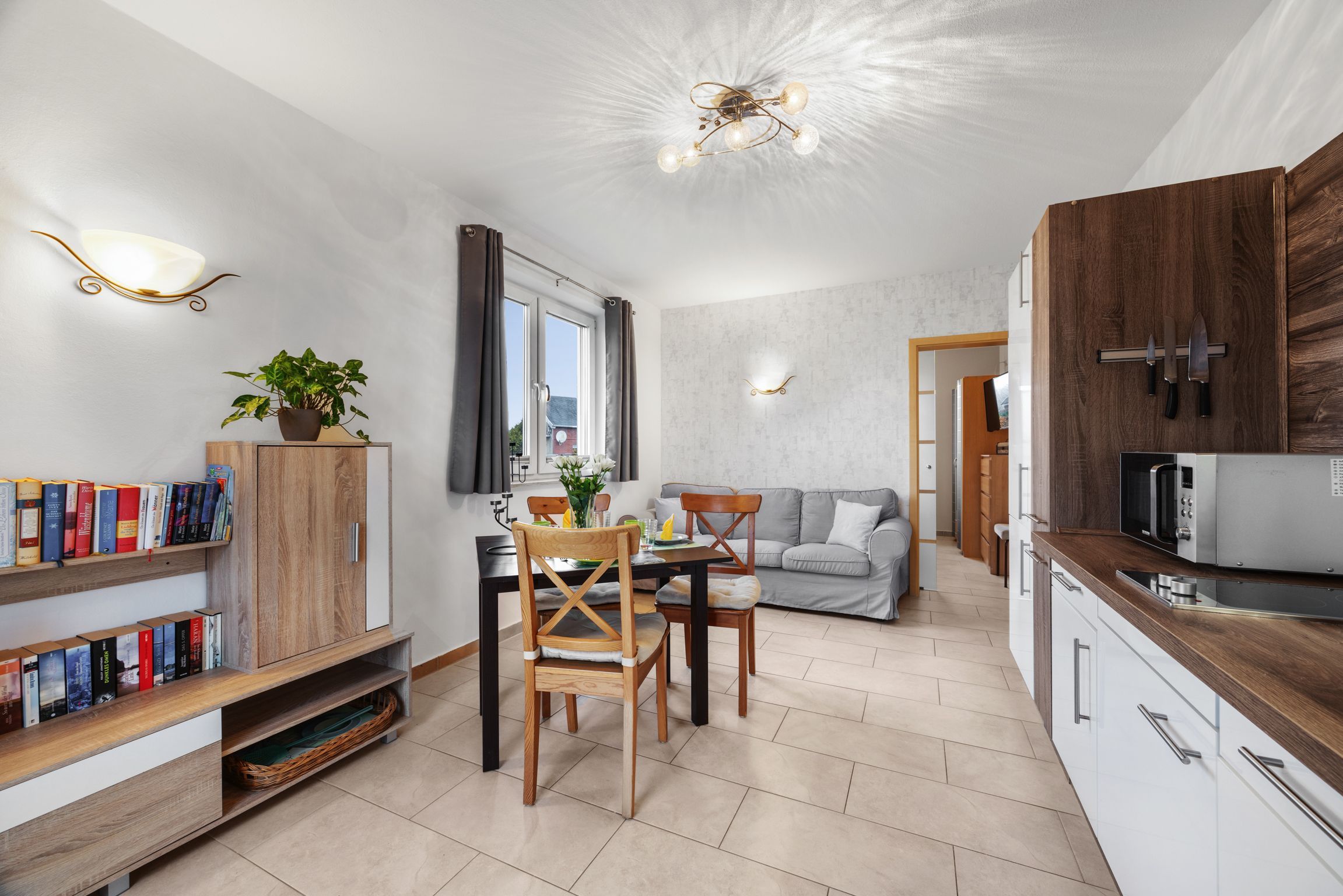 Die offene Küche ist das Herzstück unserer Wohnung. Sie finden hier einen Herd mit 2 Platten, einen Kühlschrank mit Gefriemöglichkeit, eine Mikrowelle, Wasserkocher, Eierkocher, Kaffemaschine sowie alle notwendigen Utensilien, um Ihre Lieblingsgerichte zuzubereiten. Die gesamte Wohnung ist mit einer Fussbodenheizung ausgestattet.