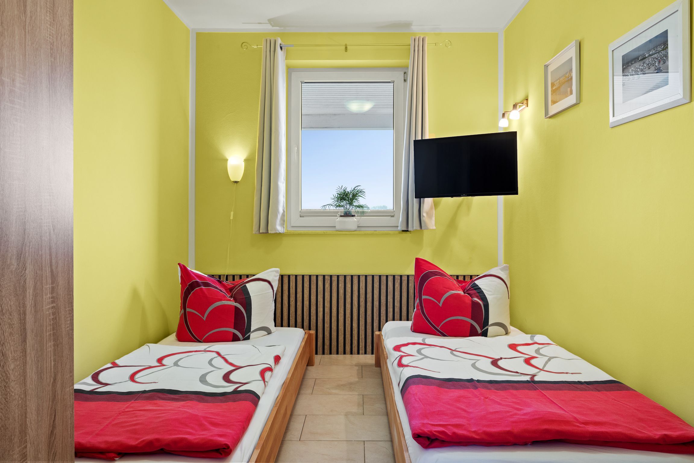 Unsere gemütliche Ferienwohnung OstseeNähe bietet Ihnen alles, was Sie für einen entspannten Aufenthalt benötigen. Sie verfügt über zwei einladende Schlafzimmer mit TV, eines mit einem Doppelbett (1,80x2,00) und das andere mit 2 Einzelbetten (je 0,90x2,00). Beide Schlafzimmer bieten ausreichend Stauraum für Ihr Gepäck.