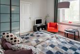 Im Wohn-/Schlafraum finden sich ein Doppelbett (1,80 x 2,00 m), eine gemütlichen Sitzecke mit Sofa, Sessel, Tisch, TV und ein geräumiger Kleiderschrank.