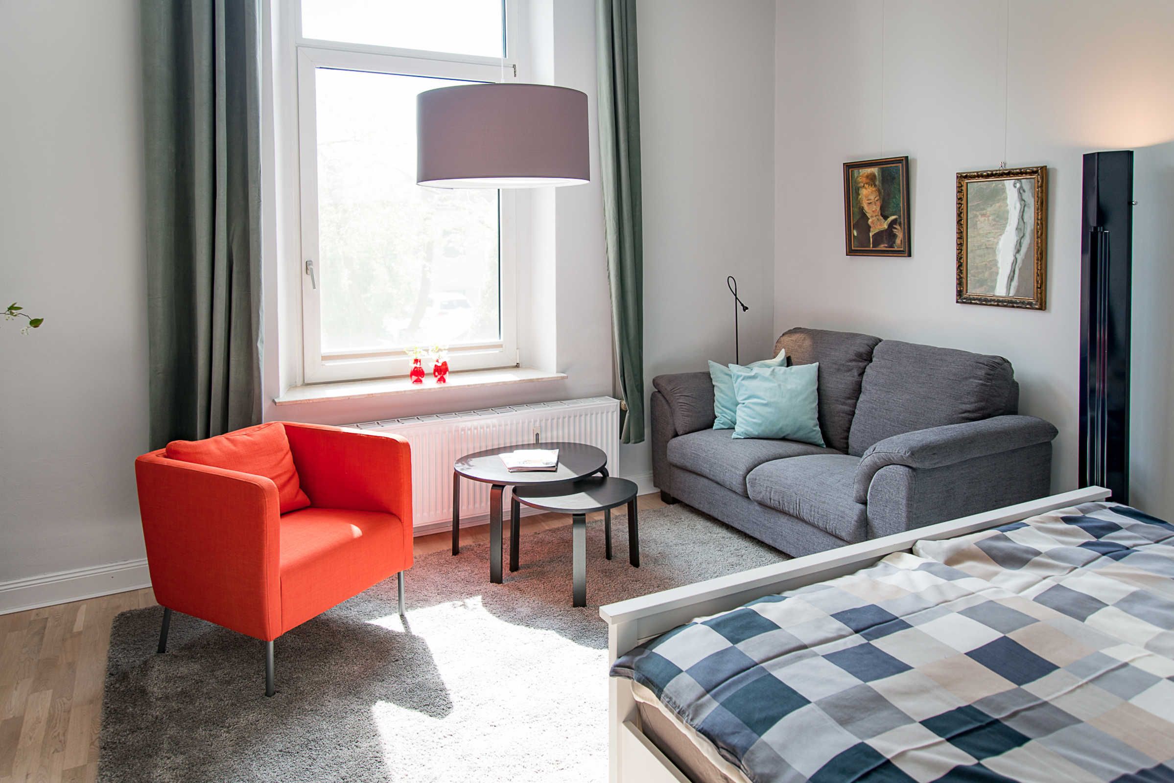 Ein Bäcker und weitere Einkaufsmöglichkeiten befinden sich in 300 m Entfernung; das Neustädter Kino ist zu Fuß in wenigen Minuten erreichbar.
