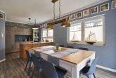 Das Haus bietet eine moderne Einrichtung im martitimen Flair. Für einzigartige und unvergessliche Ferien im Fischerdorf Freest sorgen in unseren Kapitänshäusern eine Sauna, voll ausgestattete Küche mit Ceranfeld, Backofen und Mikrowelle. Der anschließende gemütliche Wohnbereich ist ausgestattet mit einer hochwertigen Federkerncouch, Kamin, 65 Zoll HD- Fernseher und einen Billardtisch.