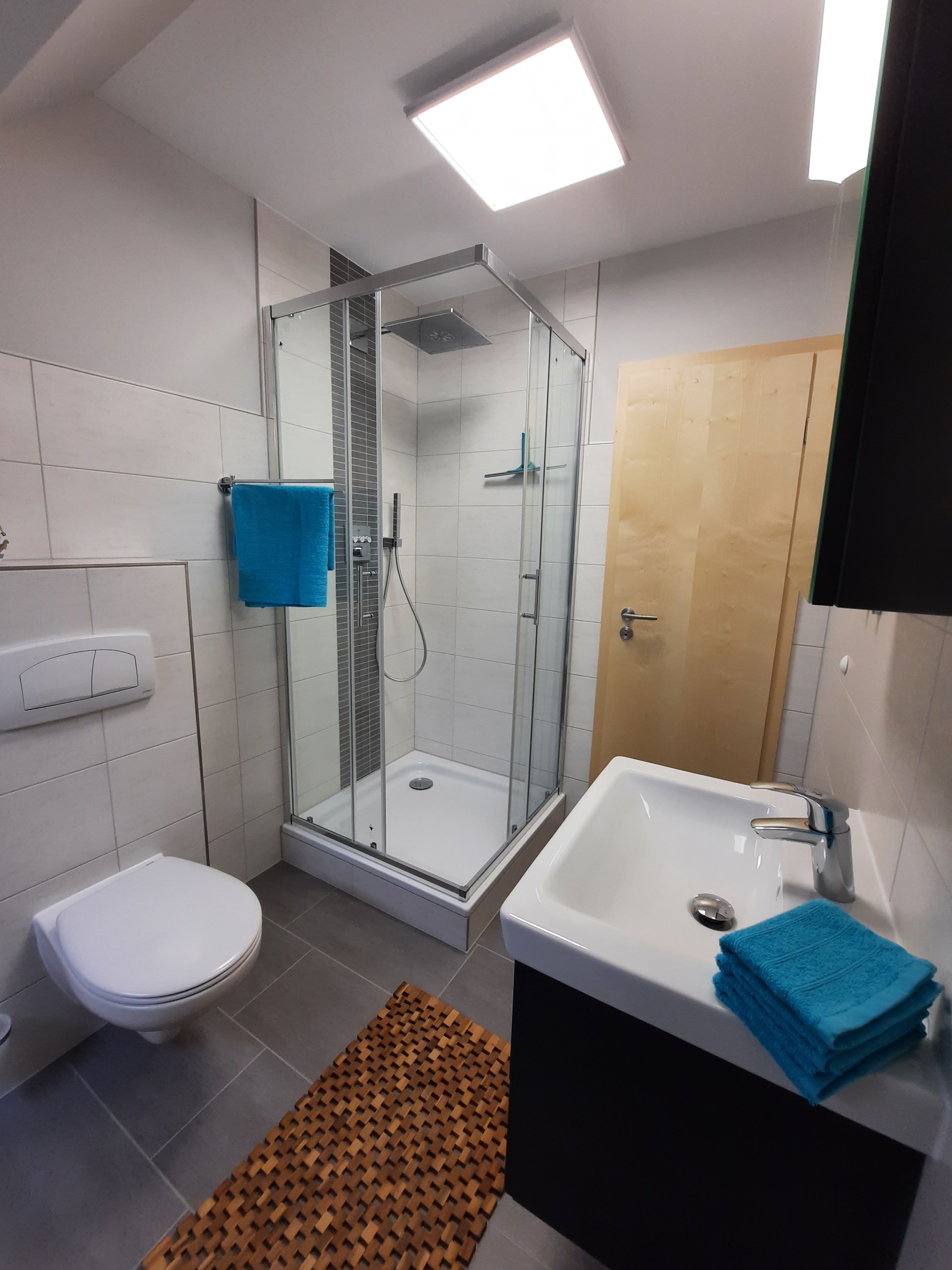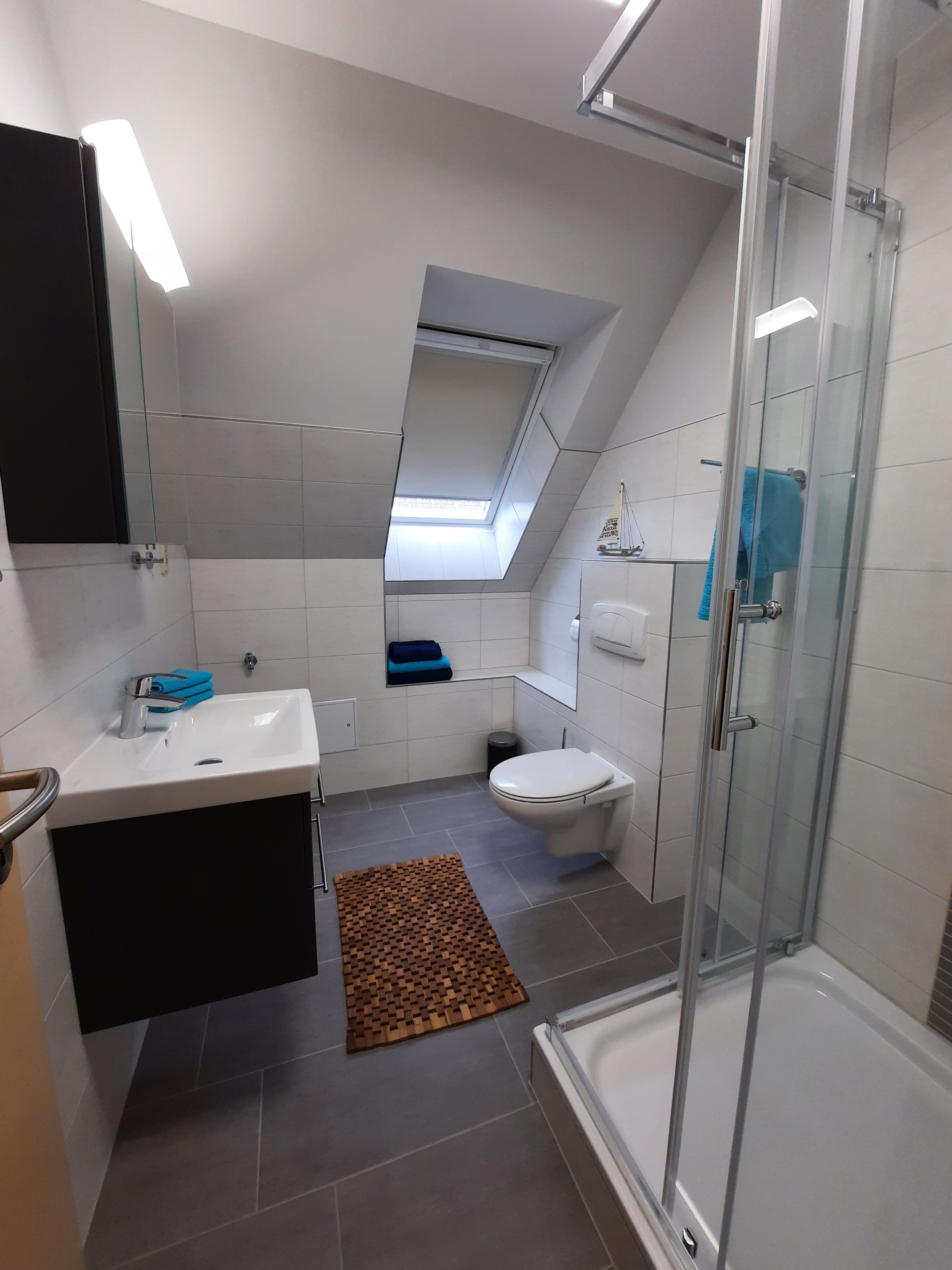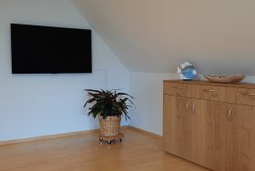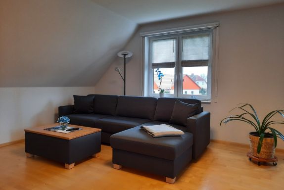 Die Ferienwohnung ist gemütlich, komfortabel und den heutigen Anforderungen entsprechend eingerichtet. Die 54 m² große Wohnung befindet sich im Obergeschoss eines Einfamilienhauses. Ausgestattet ist sie für 2 bis 4 Personen. Die Ferienwohnung verfügt über einen Schlafraum mit großzügigem Doppelbett, einem Wohnraum mit halb offener Küche und Essecke sowie ein Bad mit Du/WC. Auf Ihre Kinder wartet ein hauseigener Spielplatz mit Sandkiste, Schaukel, Tutsche und Klettergerüst. Ihren Pkw können Sie auf den bereit gestellten Parkplätzen direkt bei den Ferienwohnungen parken. Kinderreisebett und Hochstuhl auf Anfrage.