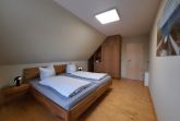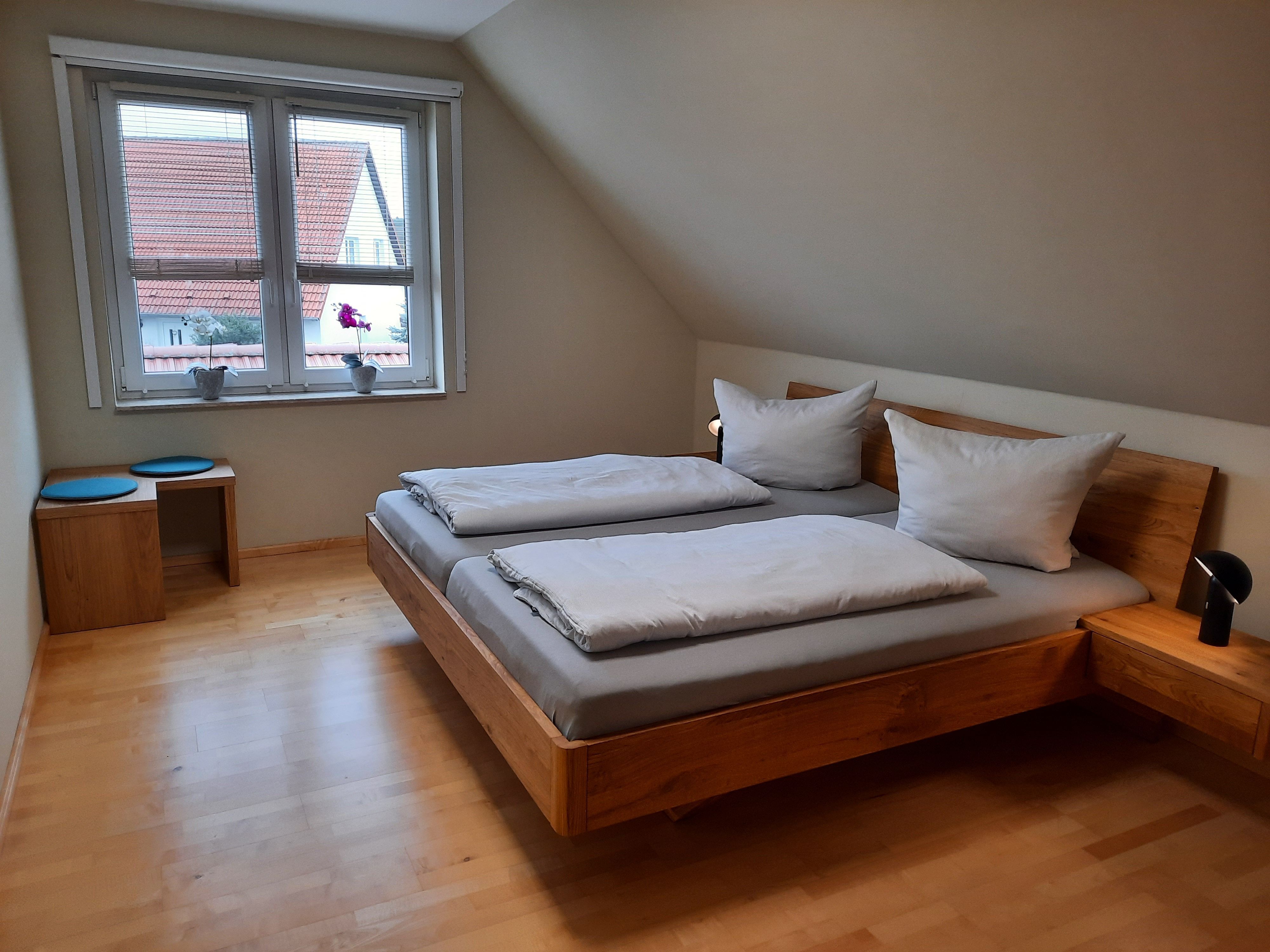 Die Ferienwohnung ist gemütlich, komfortabel und den heutigen Anforderungen entsprechend eingerichtet. Die 54 m² große Wohnung befindet sich im Obergeschoss eines Einfamilienhauses. Ausgestattet ist sie für 2 bis 4 Personen. Die Ferienwohnung verfügt über einen Schlafraum mit großzügigem Doppelbett, einem Wohnraum mit halb offener Küche und Essecke sowie ein Bad mit Du/WC.