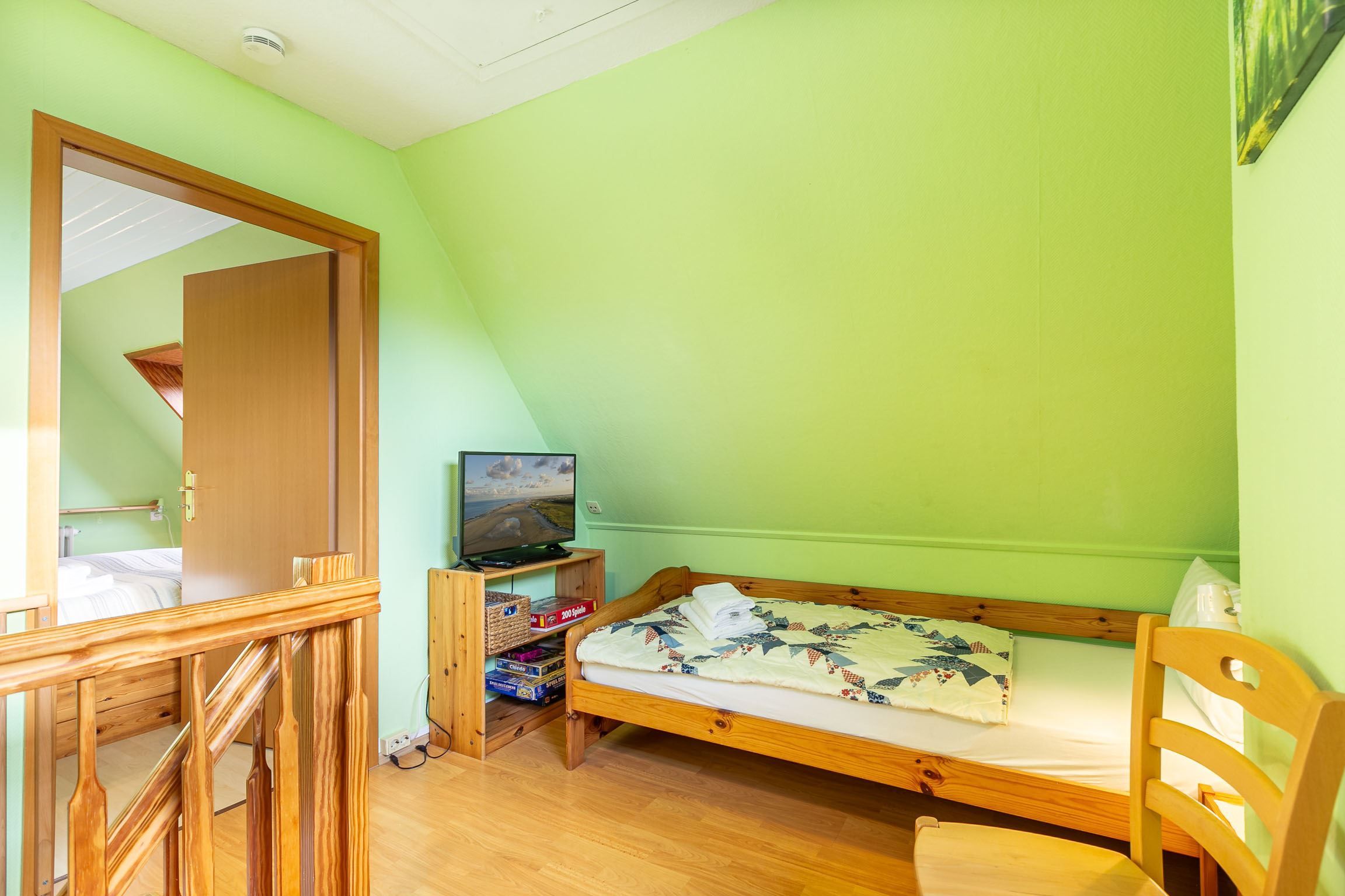 2. Schlafzimmer mit 2 Einzelbetten (je 90x200cm), TV (Sat), DVD-Spieler, Kommode und 2 Stühlen. Das 2. Schlafzimmer ist Durchgangszimmer für das 1. Schlafzimmer.