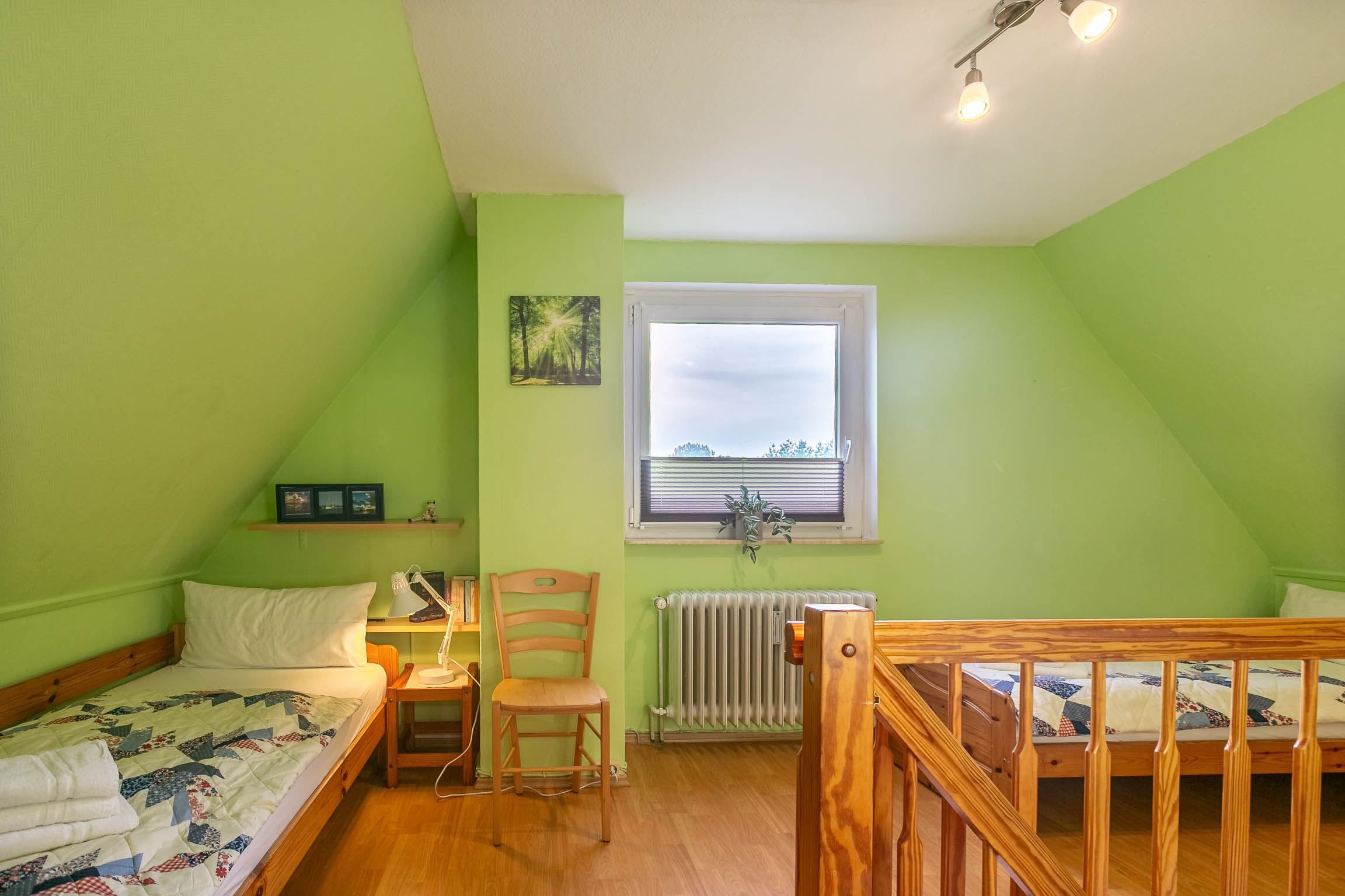 Gemütlicher Ferien-Endhausteil mit 3 Zimmern und ca. 50 m² auf 2 Ebenen (EG, OG) für bis 4 Personen. In deichnaher Lage im südlichen Ortsteil Böhl. Hunde sind nach Anmeldung herzlich willkommen.