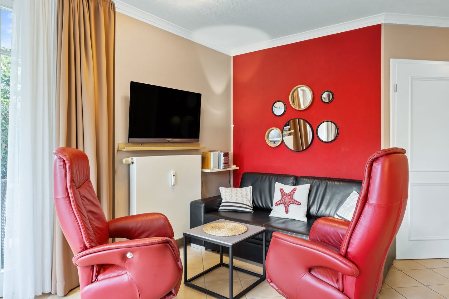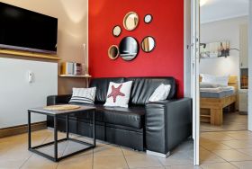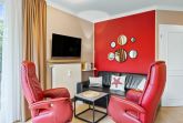 Zur Ferienanlage gehört ein eigener Wellnessbereich mit Pool, zwei Saunen, Fitness- und Ruheraum, der euch täglich zur Verfügung steht (lediglich in der 3. und 4. Kalenderwoche eines Jahres ist der Bereich auf Grund von Wartungsarbeiten geschlossen). Außerdem steht euch ein kostenfreier PKW-Stellplatz zur Verfügung. Nutzt gerne Münzwaschmaschine und -trockner in der Anlage ebenso wie den Bademantelverleih im Servicebüro. Haustiere sind nicht zugelassen.
