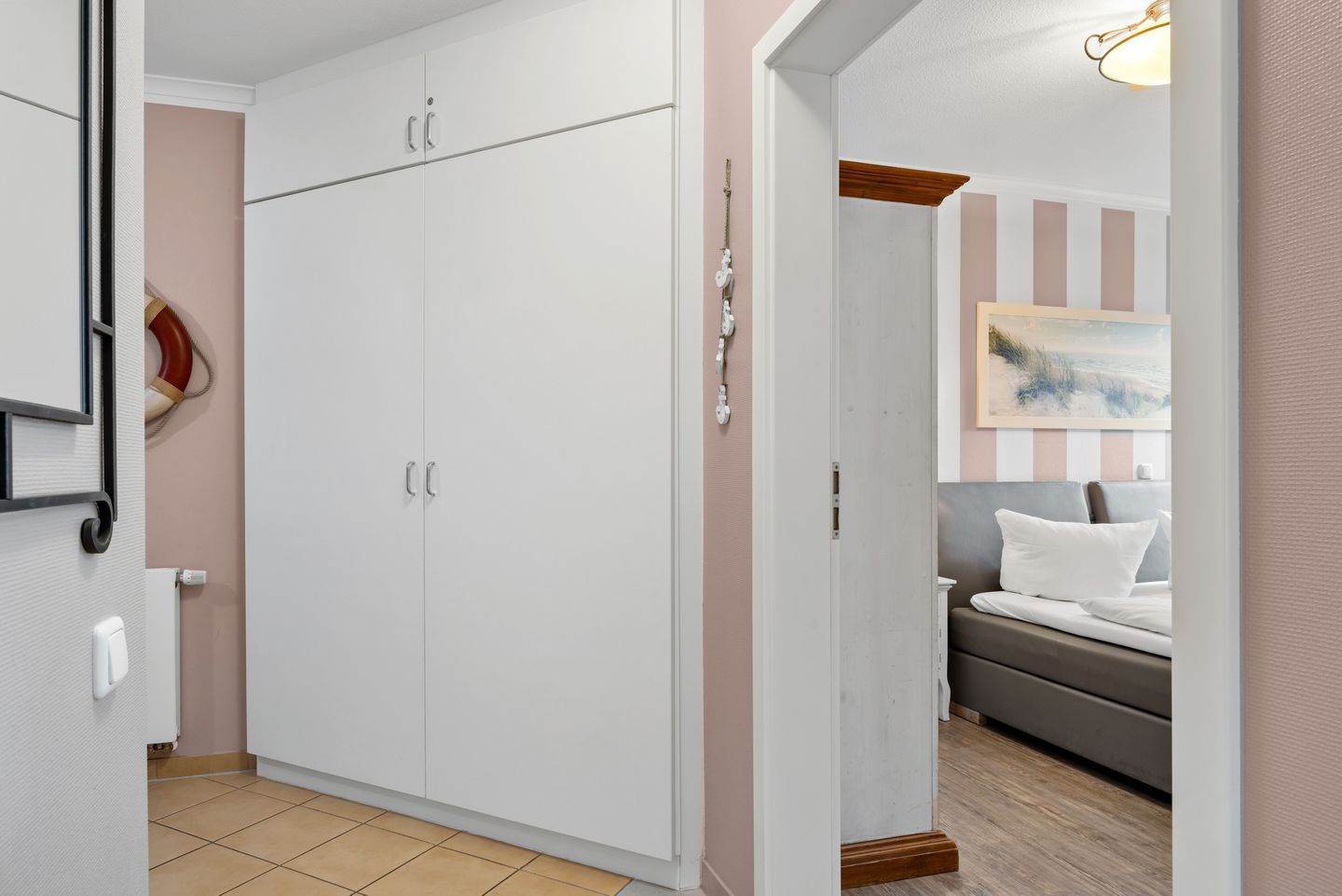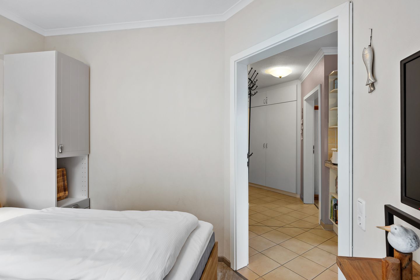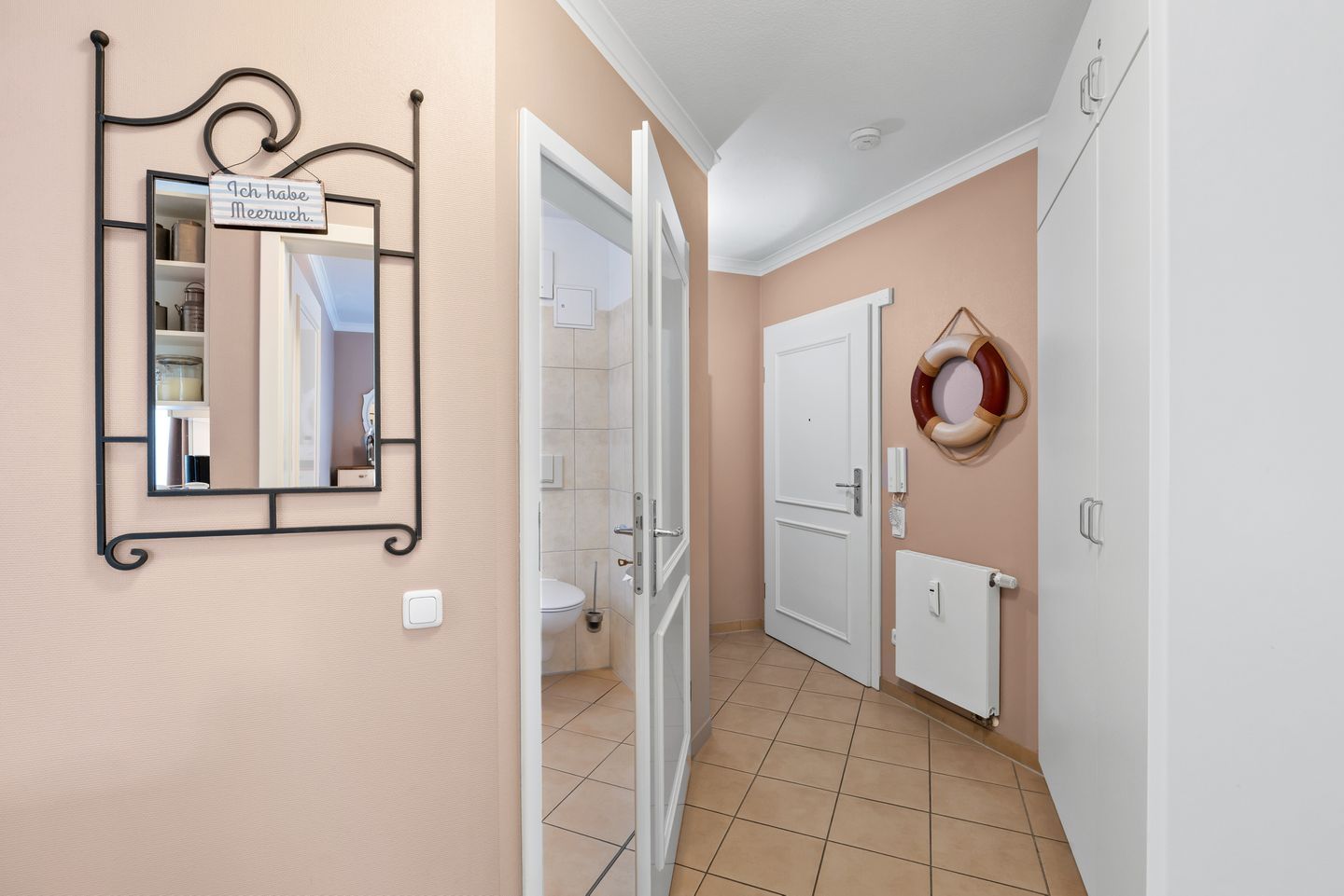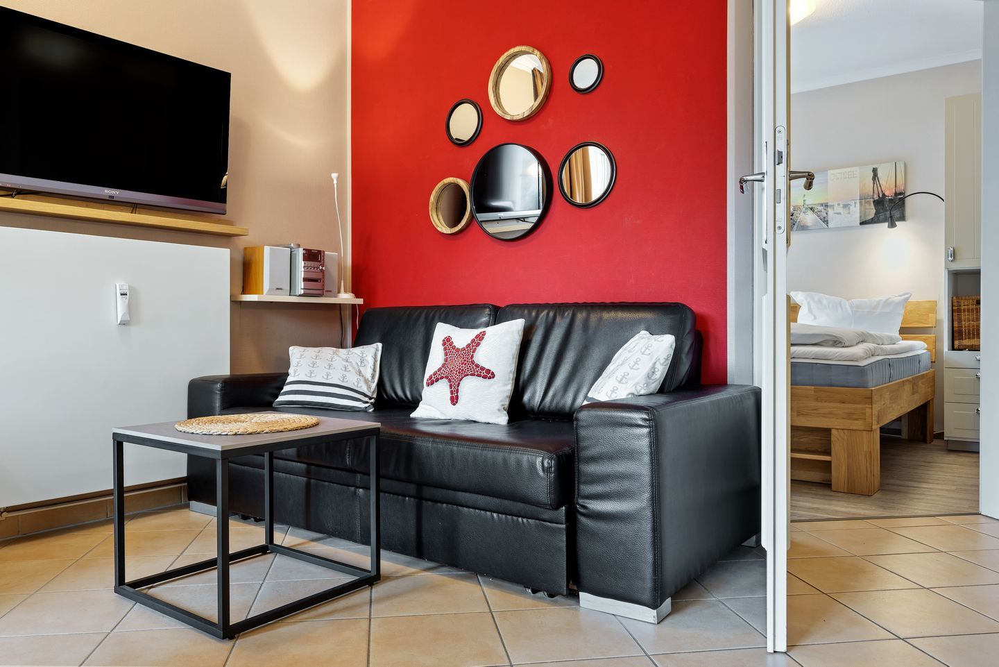Die Ferienwohnung verfügt über kostenfreies WLAN, zwei Schlafzimmer mit jeweils einem Doppelbett (ein Schlafzimmer verfügt über einen eigenen Flatscreen-TV), einen liebevoll eingerichteten Wohnbereich mit großem Flatscreen-TV und integriertem DVD-Player sowie über ein geschmackvolles Badezimmer mit ebenerdiger Dusche, Föhn und Kosmetikspiegel. Auf der überdachten Terrasse mit Gartenmöbeln für 4 Personen ausgestattet, ist Platz für die ganze Familie. Die Terrasse ist zur Meerseite gelegen und in den Herbst- und Wintermonaten, wenn die Bäume des Küstenwaldstreifens ihre Blätter verlieren, könnt ihr sogar einen Blick auf die Ostsee genießen.