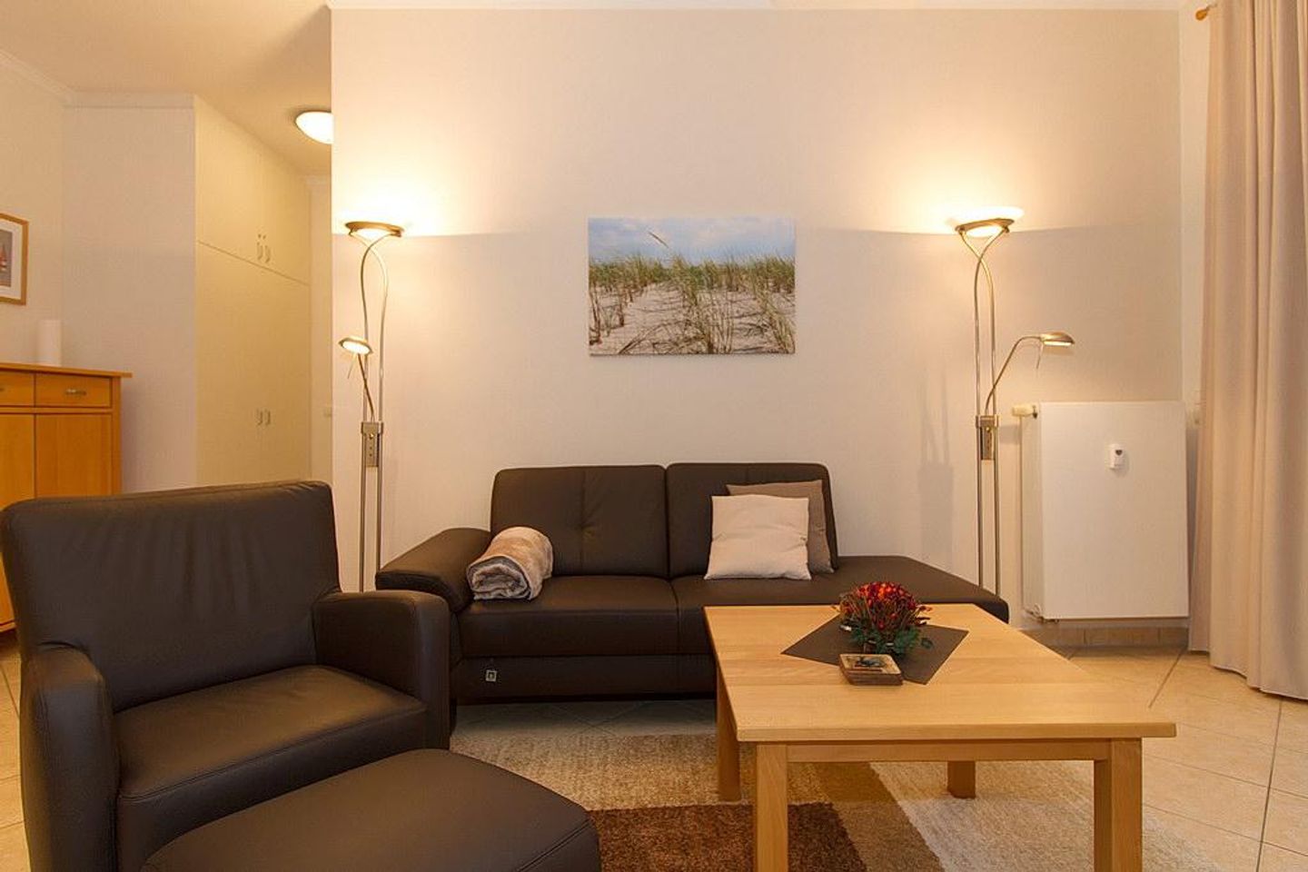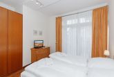 Das geflieste Nichtraucherapartment mit Duschbad besteht aus einem Schlafzimmer mit Doppelbett (2 x 80 x 2,00 m) und Verdunklungsmöglichkeit, einem Wohnbereich mit Couch und einer Terrasse zur Westseite.