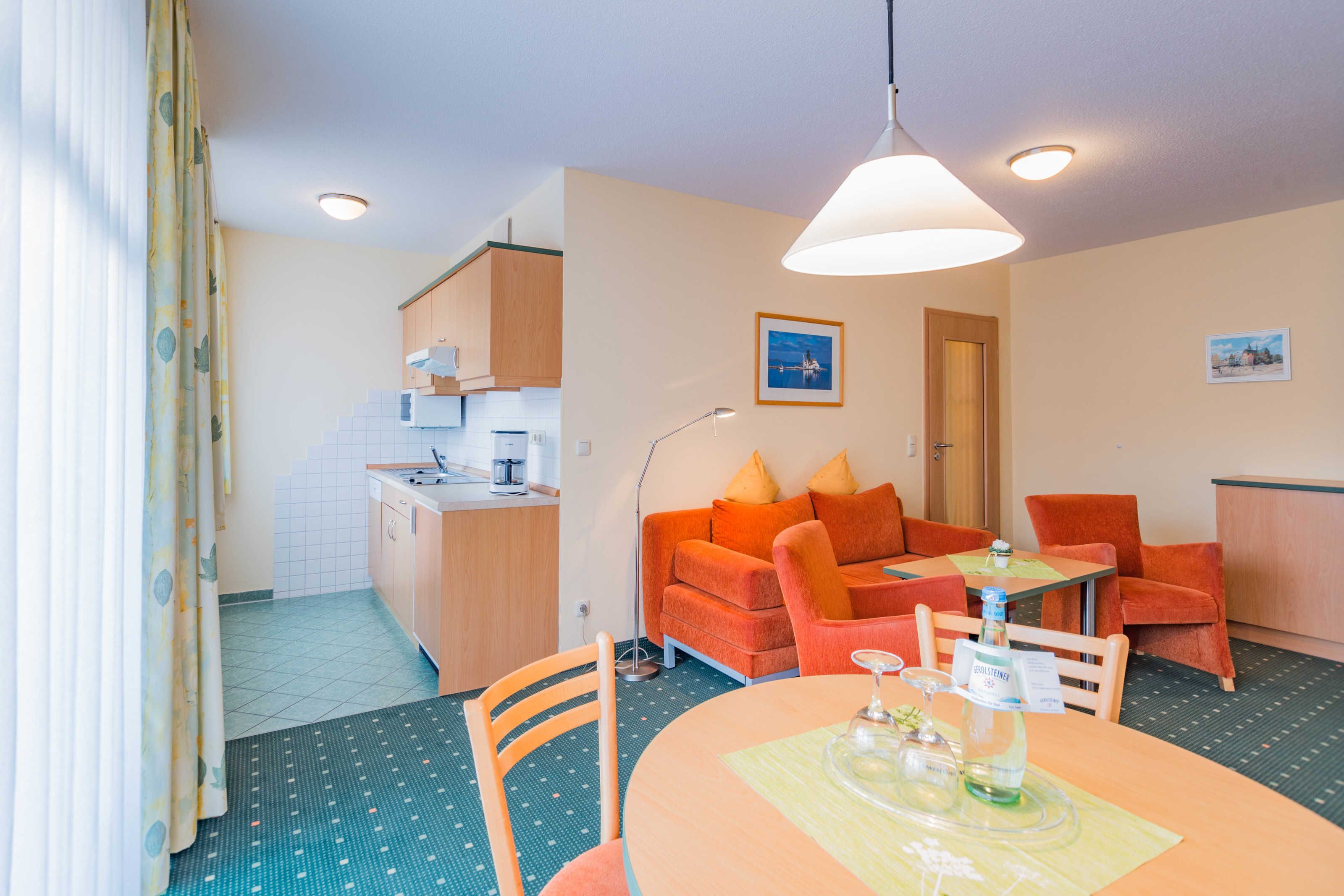 Wer sich lieber verwöhnen lässt, bucht einfach das reichhaltige Frühstücksbüffet und das Abendmenü im Wintergarten des Am Weststrand Aparthotel Kühlungsborn mit. Auch ernährungsbewusste Gäste kommen bei frischen Salaten, leichten Speisen und ständig wechselnden Tagesgerichten auf ihre Kosten.