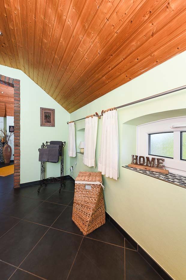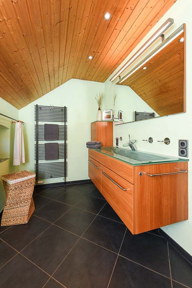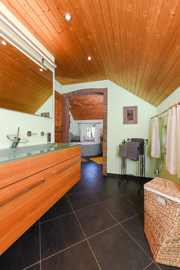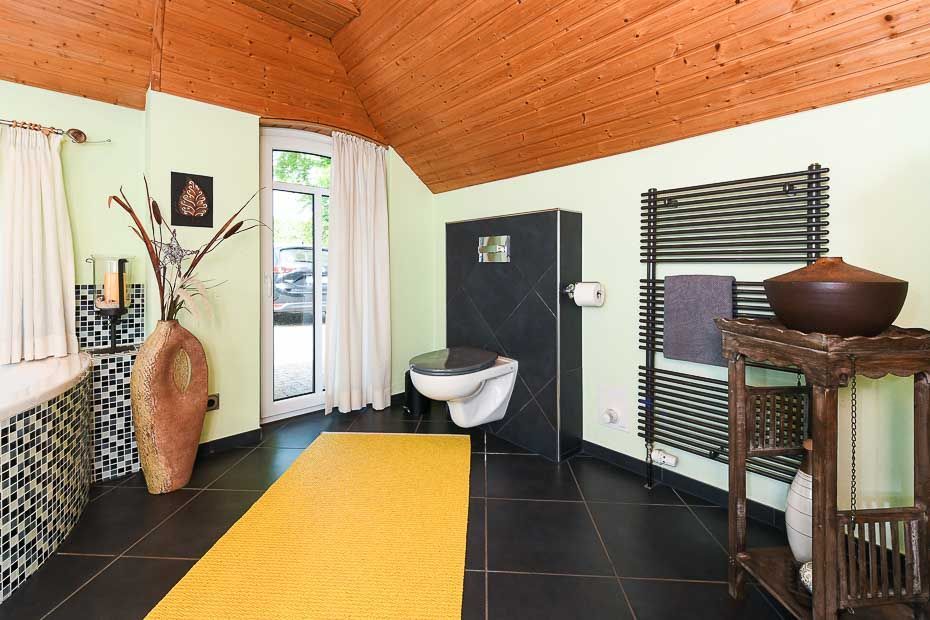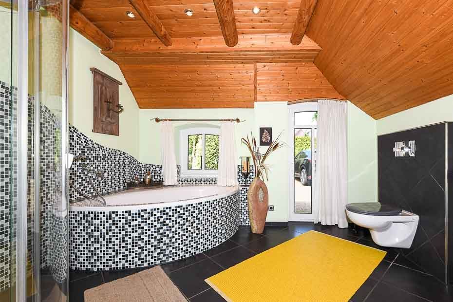 Badezimmer mit Badewanne, Dusche, Waschtisch und WC