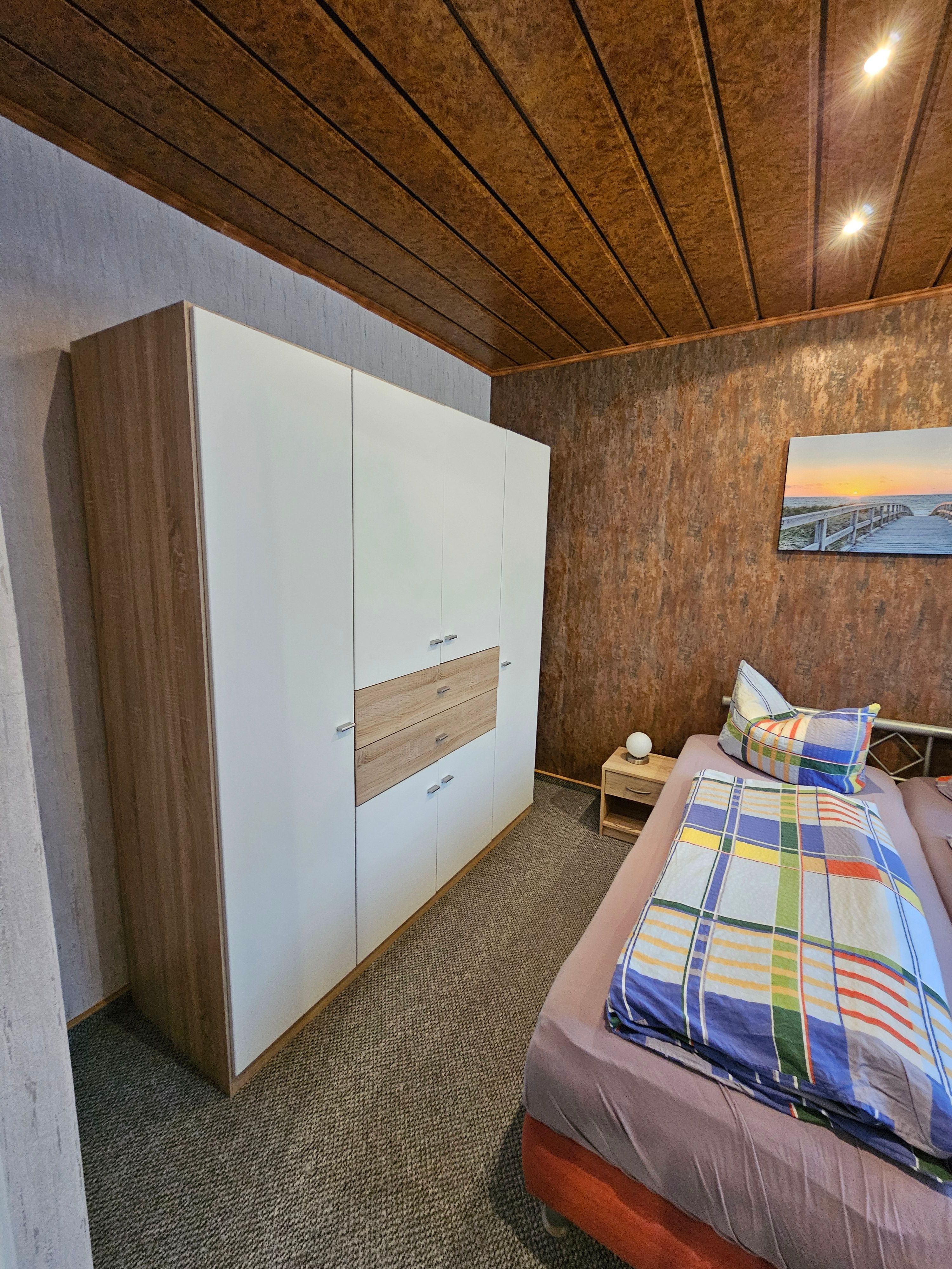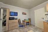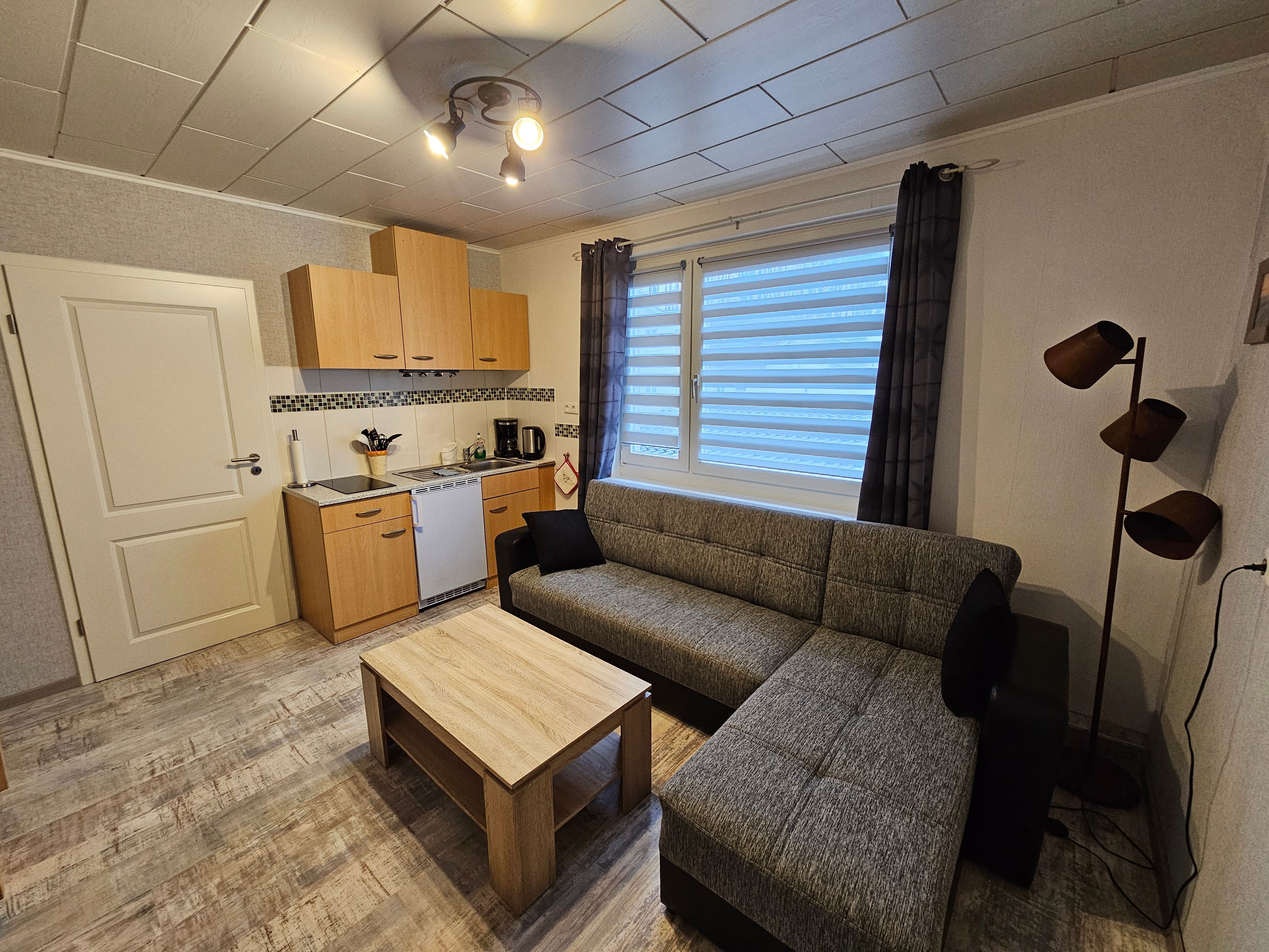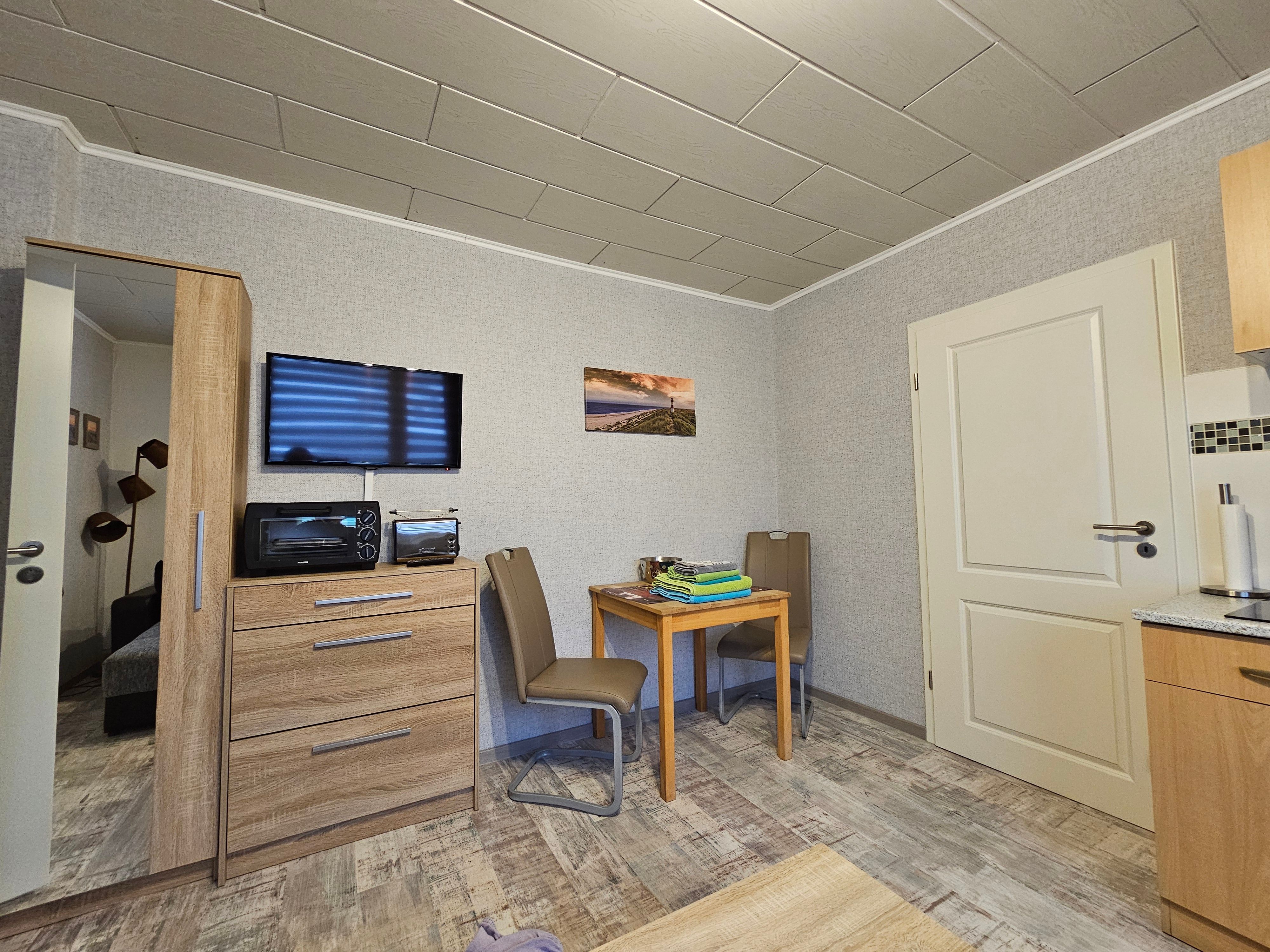 Unsere Ferienwohnung 3 besteht aus Schlafraum mit Doppelbett und Kleiderschrank. Der Wohnbereich verfügt über eine Pantryküche, Schlafsofa und einer Essecke, sowie SAT TV. Das Bad besteht aus einem WC, Badblock und einer Dusche. Sie befindet sich in der 1. Etage. Zur weiteren Benutzung steht Ihnen eine Terrasse mit Sitzmöglichkeiten, Grill und ein PKW Stellplatz zu Verfügung.