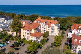 Das pittoreske Dünenschloss mit seinen individuell eingerichteten Ferienwohnungen, befindet sich direkt an der Ostseeallee und liegt nur 50 Meter vom feinsandigen Strand und der Promenade entfernt. Der Stadtwald ist in wenigen Gehminuten erreicht und lädt zu ausgiebigen Spaziergängen ein.
