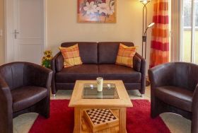Das Nichtraucher-Apartment besteht aus zwei Schlafzimmern mit einem Doppelbett (2 x 90 x 2,00 m) bzw. einer Doppelschlafcouch, einem Duschbad und einem überdachten und windgeschützten Balkon nach Süden.