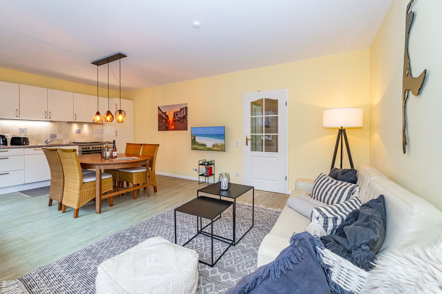 Willkommen in unserer gemütlichen Ferienwohnung Emma, die sich im Erdgeschoss eines charmanten Gebäudes im Süden von Westerland befindet. Die Ferienwohnung erstreckt sich über eine Fläche von 58 m² und bietet Platz für bis zu vier Personen. Sie verfügt über zwei Schlafzimmer, die mit hochwertigen Betten ausgestattet sind und Ihnen erholsame Nächte garantieren. Das helle und freundlich gestaltete Wohnzimmer lädt zum entspannen ein. Hier finden Sie eine bequemes Sofa, wo Sie nach einem erlebnisreichen Tag an der frischen Luft relaxen können. Von hier aus haben Sie auch Zutritt zur Terrasse. Für gesellige Abendessen steht Ihnen ein Essbereich zur Verfügung, der perfekt für gemeinsame Mahlzeiten ist. Die offene Küche ist gut ausgestattet, sodass Sie bequem Ihre Lieblingsgerichte zubereiten können. Zu den Annehmlichkeiten gehören unter anderem ein Herd, ein Backofen, eine Spülmaschine und eine Mikrowelle. Das Badezimmer verfügt über eine Dusche, WC und Waschmaschine. Die Terrasse lädt dazu ein, die frische Nordseeluft zu genießen und die Seele baumeln zu lassen. Ein Parkplatz steht Ihnen am Haus zur Verfügung.