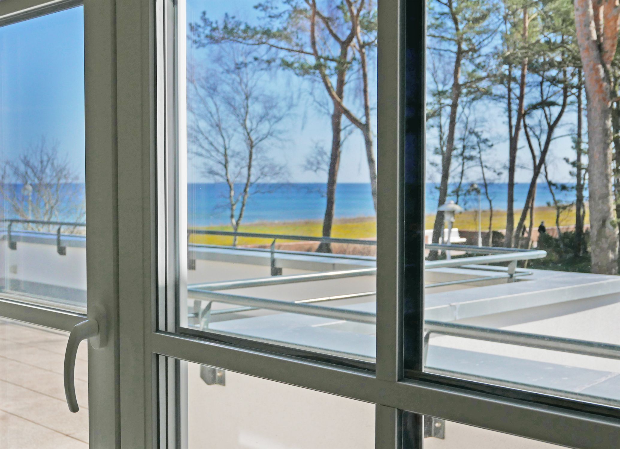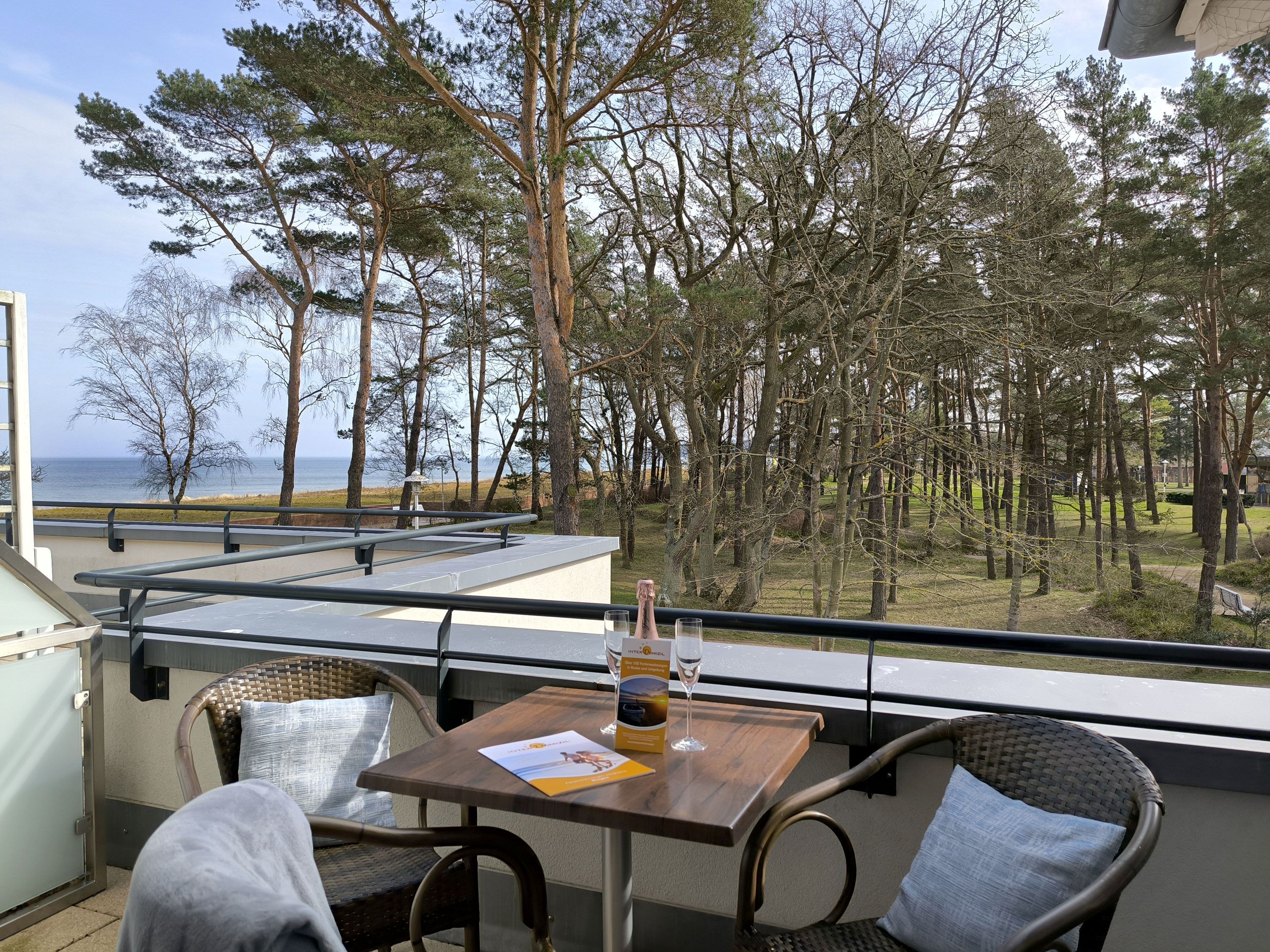 2 Zimmer Ferienwohnung in Baabe für 2-4 Personen mit tollen Meerblick für bis zu 4 Personen in einer kleinen Residenz direkt am Meer mit nur 13 Wohneinheiten. Alle Wohneinheiten haben Balkon und einen Tiefgaragenstellplatz.