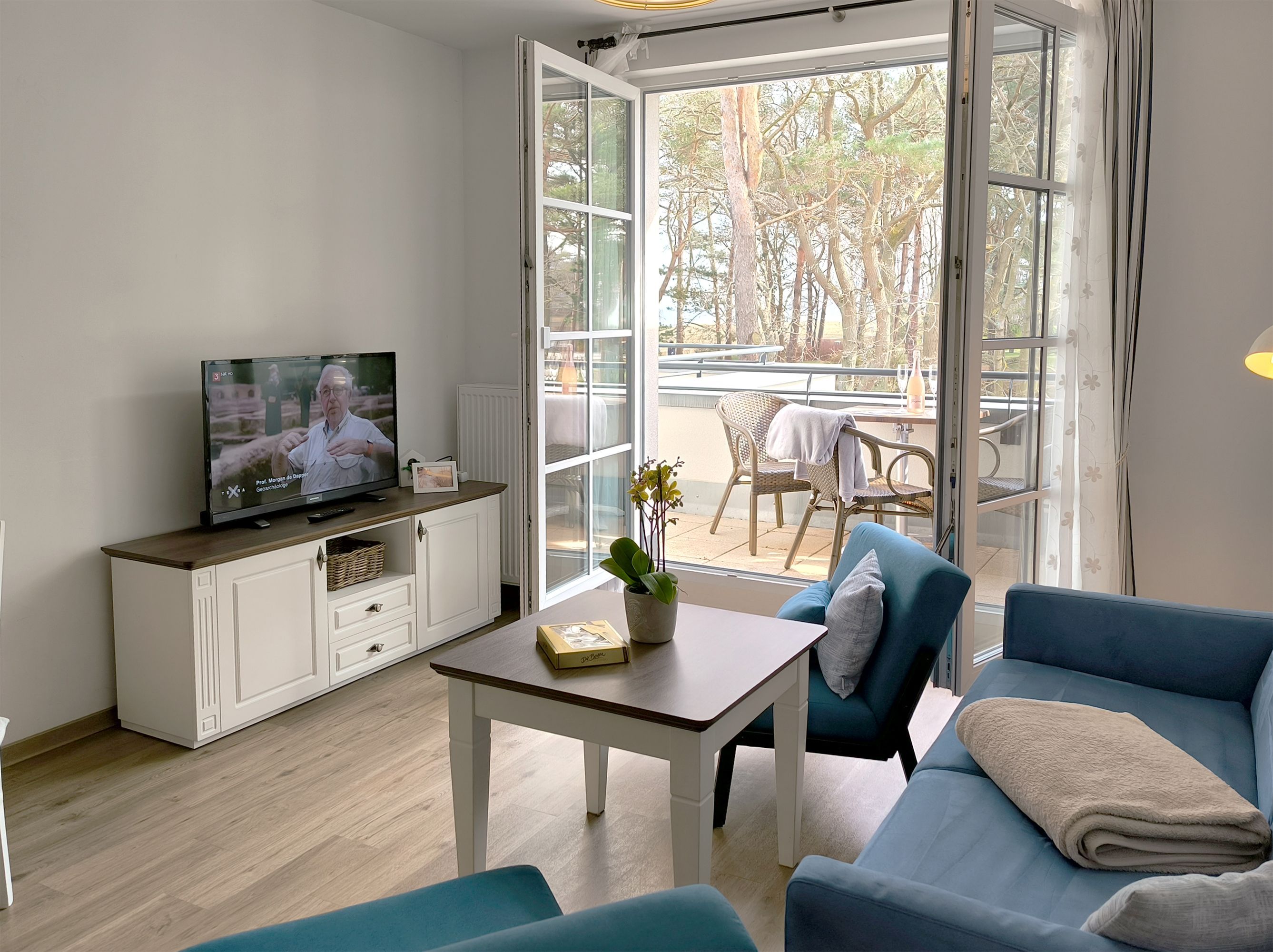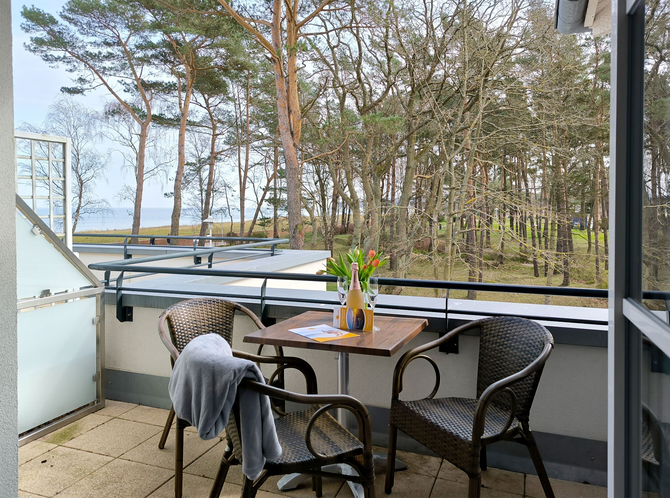 Direkt am Meer, näher geht es nicht - liegt diese schöne Ferienwohnung mit Meerblick vom Wohnzimmer und vom Balkon. Genießen sie das Meeresrauschen und springen sie noch vor dem Frühstück in die Ostsee.