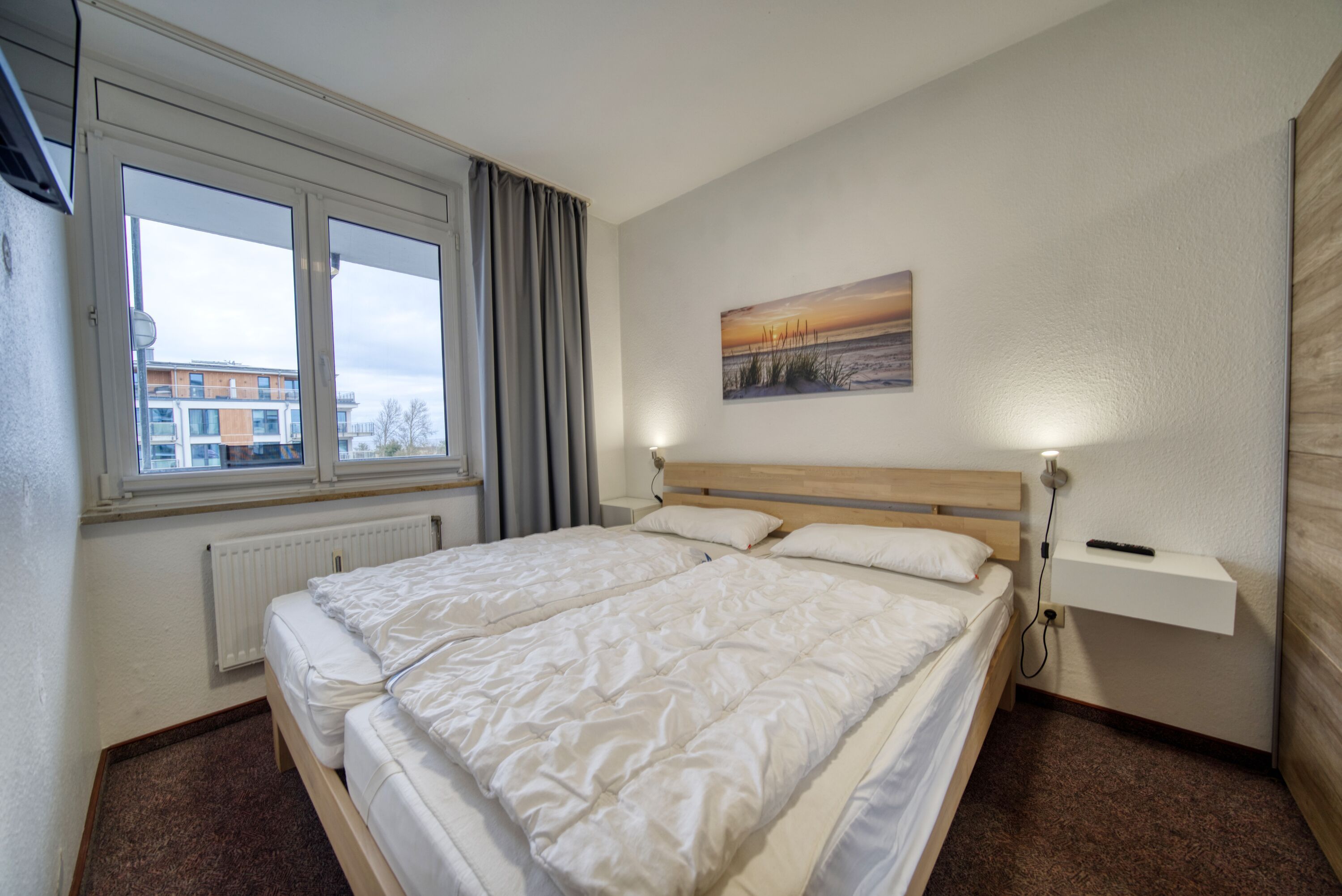 Separates Schlafzimmer mit gemütlichem Doppelbett (180?x?200?cm) und eigenem TV