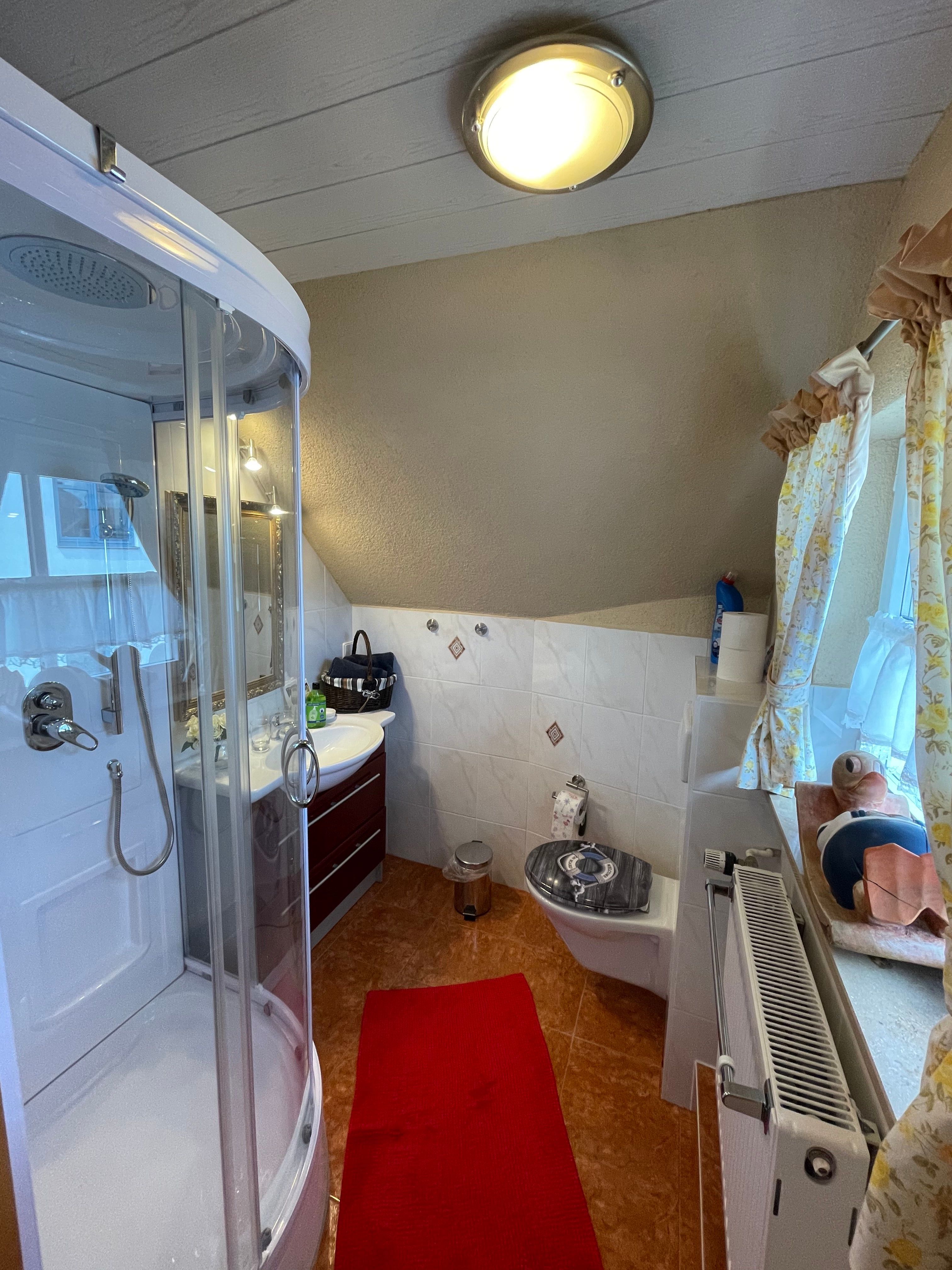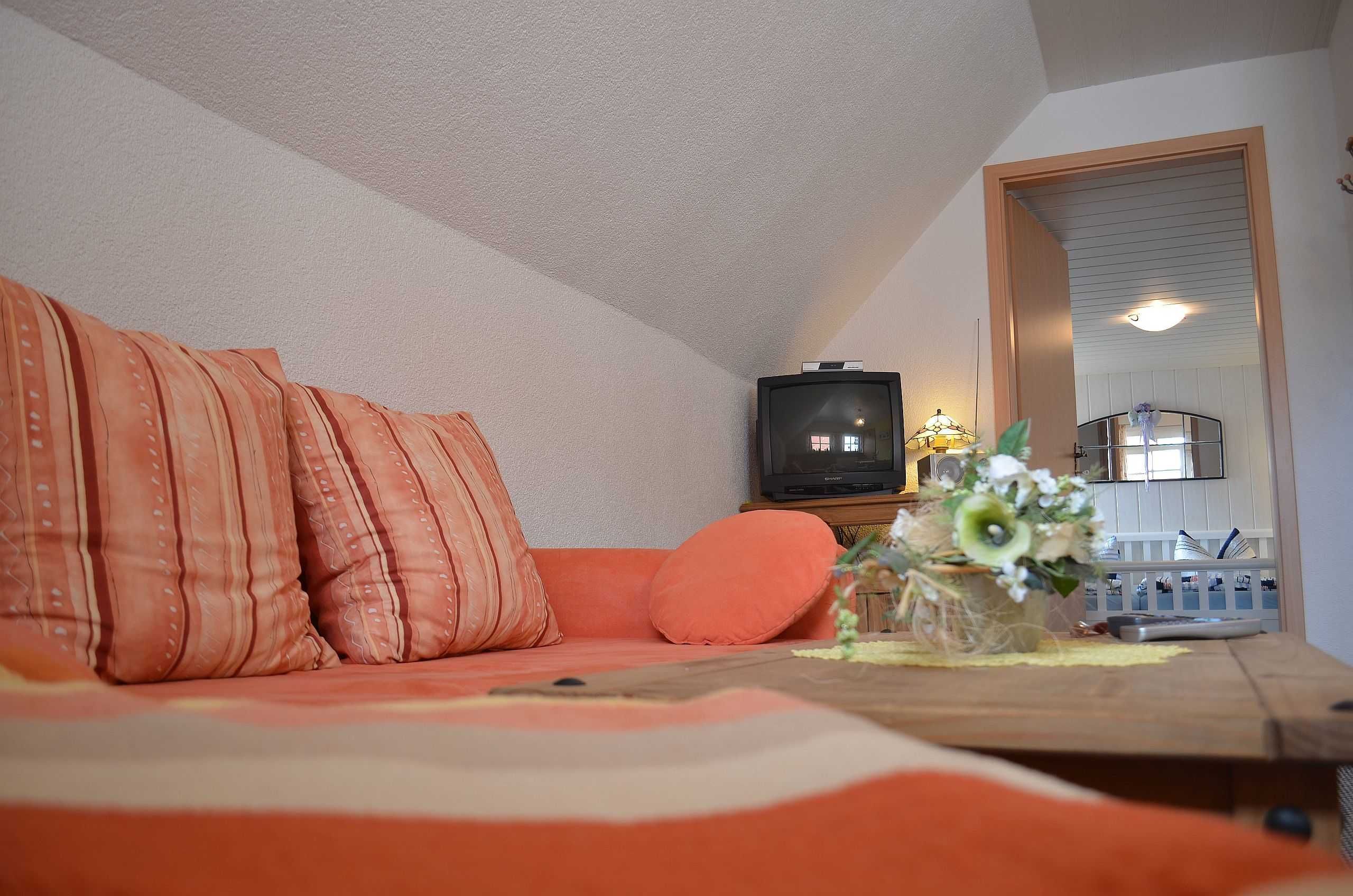 Die gemütliche Ferienwohnung (Nichtraucher) mit Ihrer maritimen Ausstattung bietet mit seinen ca. 33 qm ausreichend Platz für 2-3 Personen. Der Wohnbereich umfasst eine gemütliche Couchecke (Aufbettung für 3.Person) mit Couchtisch ein Sideboard mit Radio und TV-Gerät. Die angrenzende Einbauküchenzeile mit Essecke bietet Ihnen ein 2 Platten-Ceranfeld, Abzugshaube, kleinen Backofen, Spüle, Kaffeemaschine, Wasserkocher, Toaster sowie diverse Küchenutensilien. Das Schlafzimmer verfügt über ein Doppelbett mit Nachtischkonsolen und einen Kleiderschrank. Das geflieste Tageslichtbad verfügt über eine Wellness-Dusche, WC, Waschtisch und einen Fön. WLAN inklusive. Die bestuhlte Gemeinschaftsterrasse lädt zum Verweilen ein. Das separate und gemütliche Blockhaus auf dem Grundstück der Vermieter, steht allen Gästen der Pension zur Verfügung. Ein gemütlicher Grillabend findet in der Saison 1 x wöchentlich zusammen mit dem Vermieter statt. Genauere Informationen erhalten Sie vor Ort. Auf Anfrage können Sie vor Ort ebenfalls den Brötchenservice in Anspruch nehmen sowie das Frühstück p.P. für 7,00 Euro dazu buchen. Bis 14 Tage vor Anreise können Sie die Erstausstattung eines Wäschepaketes für 6,00 Euro p.P. dazu buchen bzw. durch eigene ergänzen. Haustiere sind nicht erlaubt.