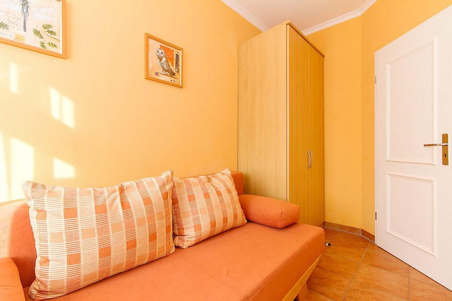 Das Nichtraucher-Feriendomizil verfügt über kostenfreies WLAN und ist mediterran eingerichtet. Es besteht aus einem Schlafzimmer mit Doppelbett (2 x 80 x 2,00 m), einem Kinderzimmer mit Couchliege (1,40 m x 2,00 m), einem Wohnbereich, einem Bad mit Dusche und aus einem sonnigen Balkon mit Blick zum Stadtwald.