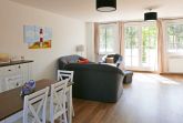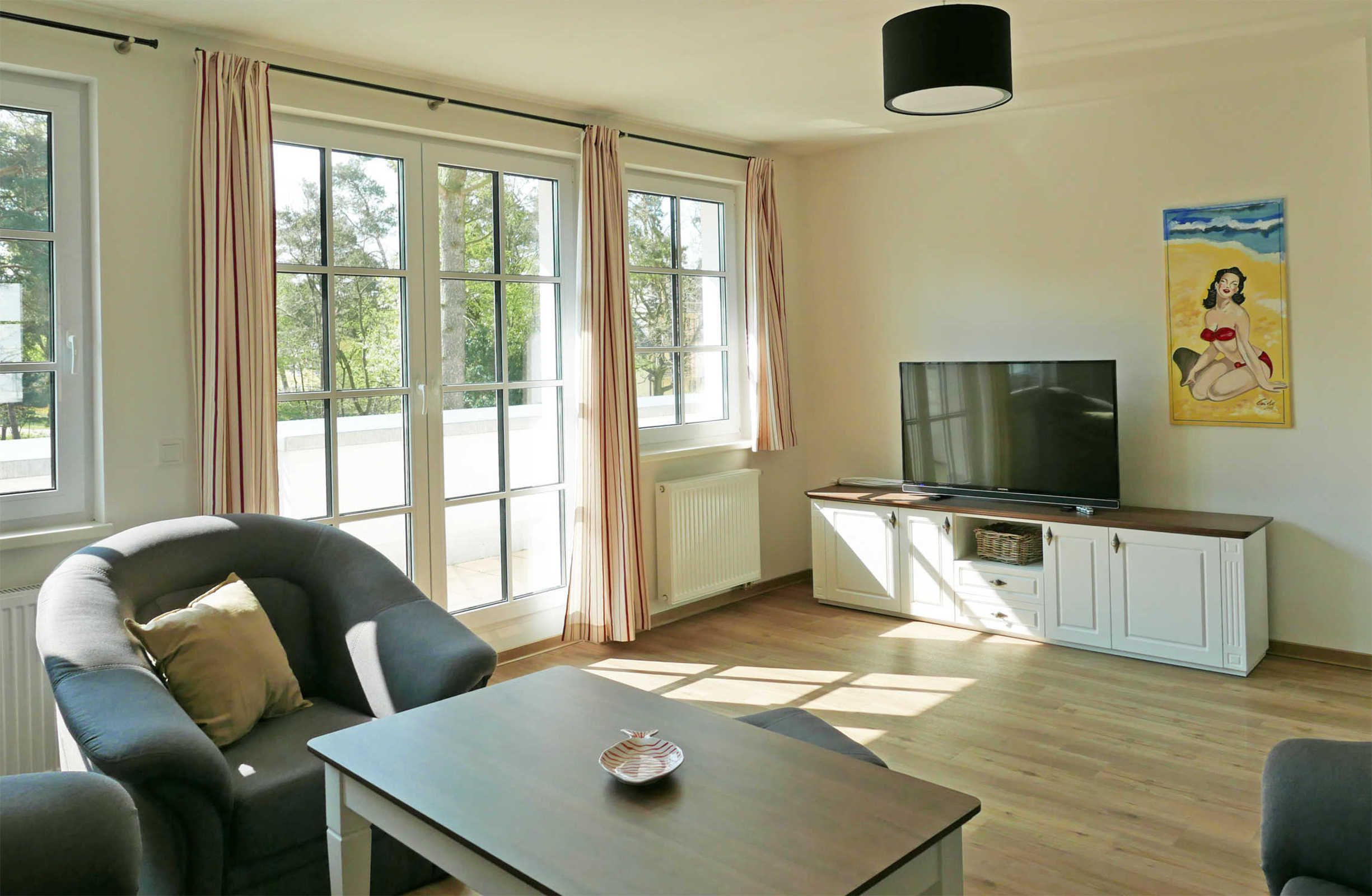 Die helle 90 qm große 3 Zimmer Meerblickwohnung Sandbank befindet sich in der 2017 eröffneten Ferienanlage Inselparadies direkt am Strand von Baabe. Alle Wohnungen weisen einen Meerblick auf, der vom Balkon genossen werden kann. Auch WLANist vorhanden.