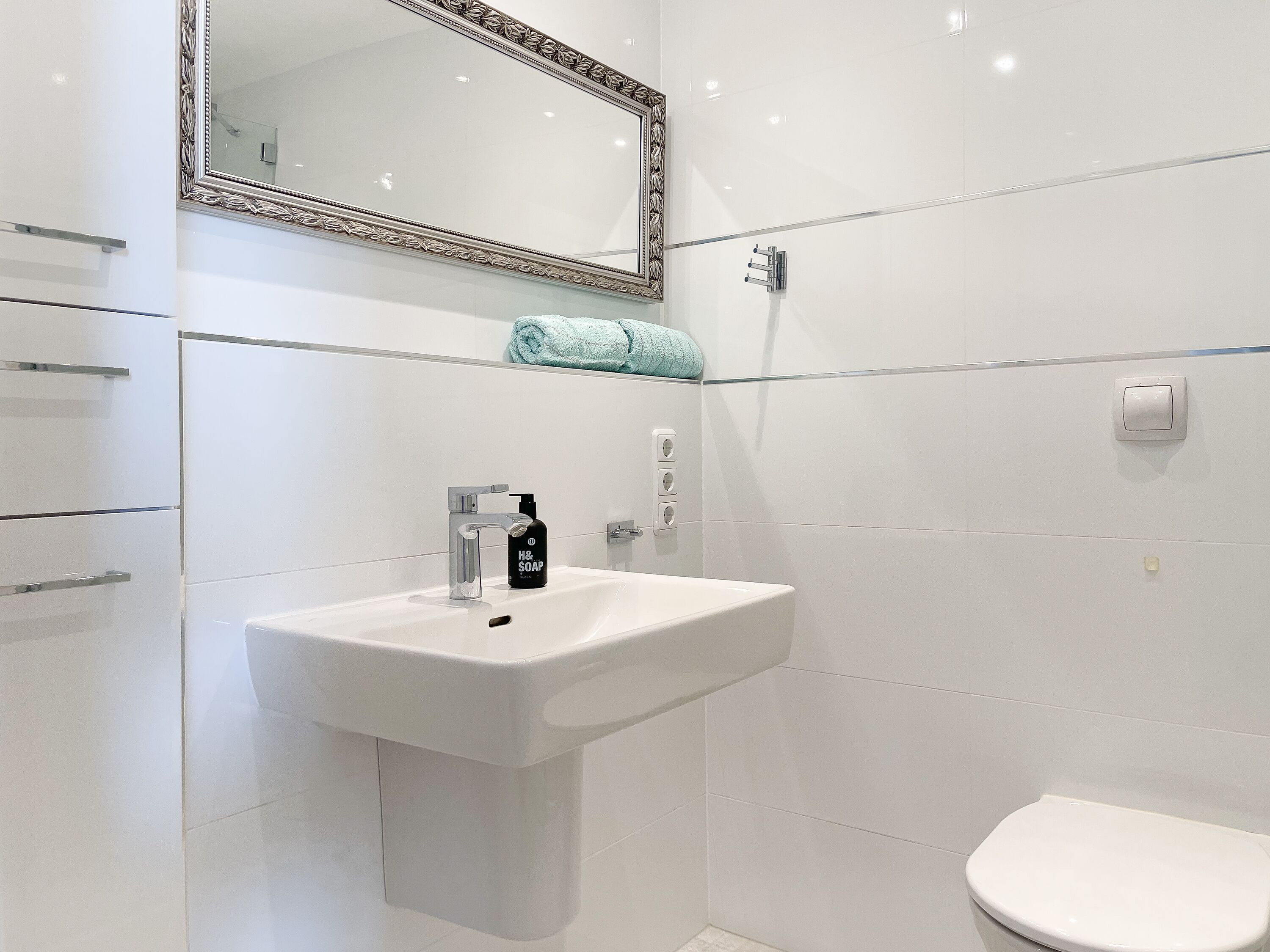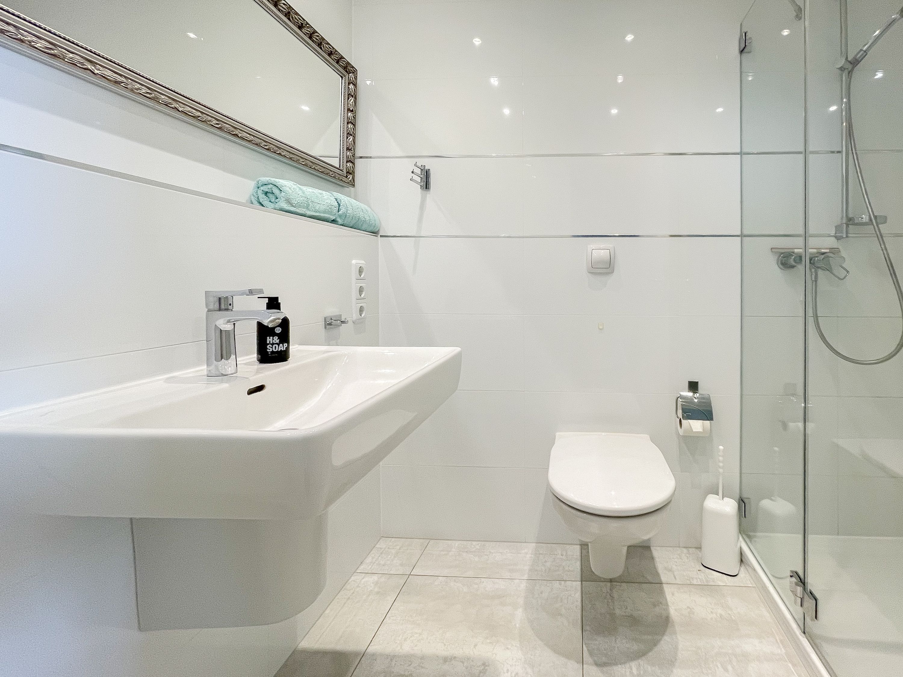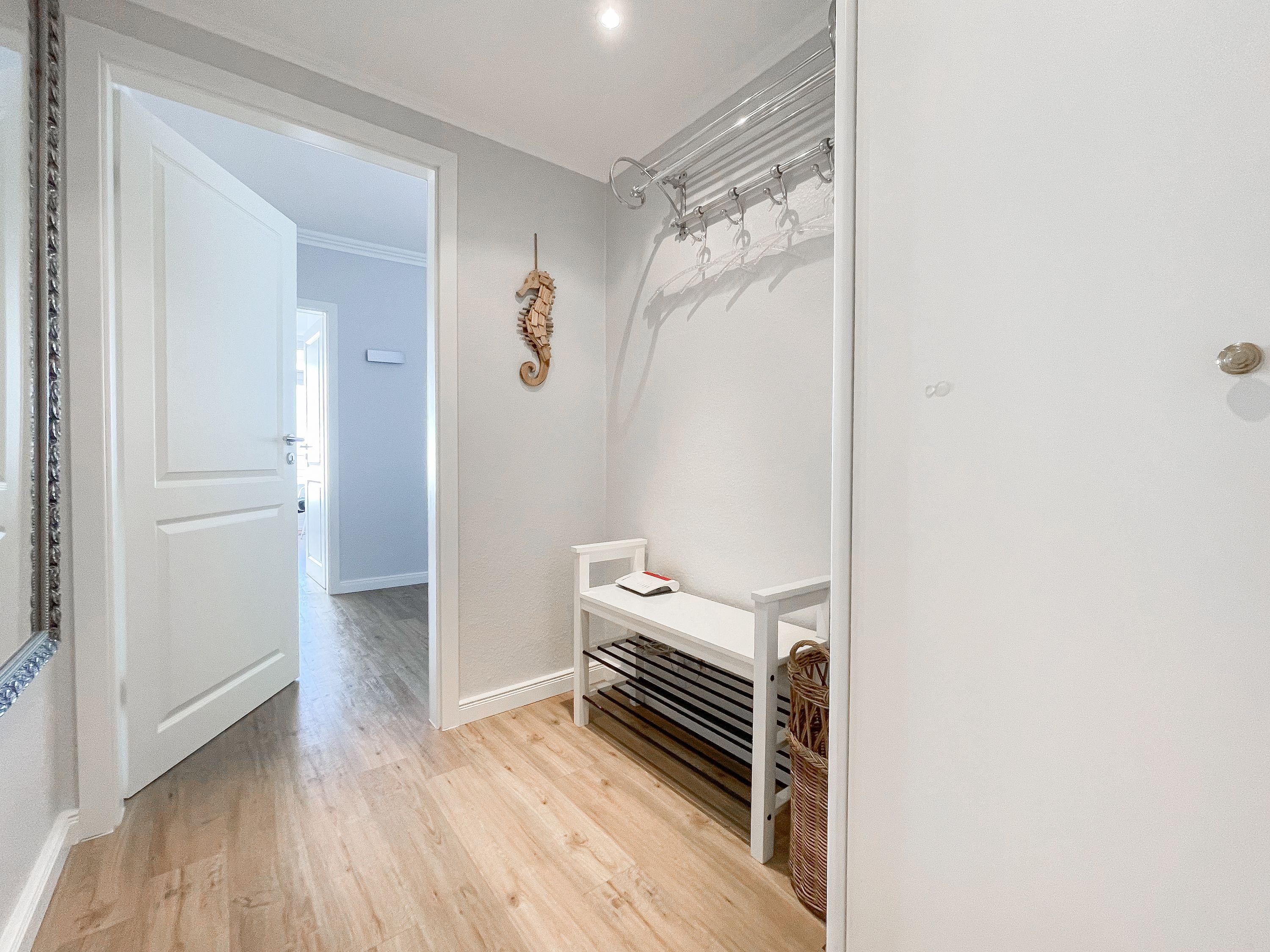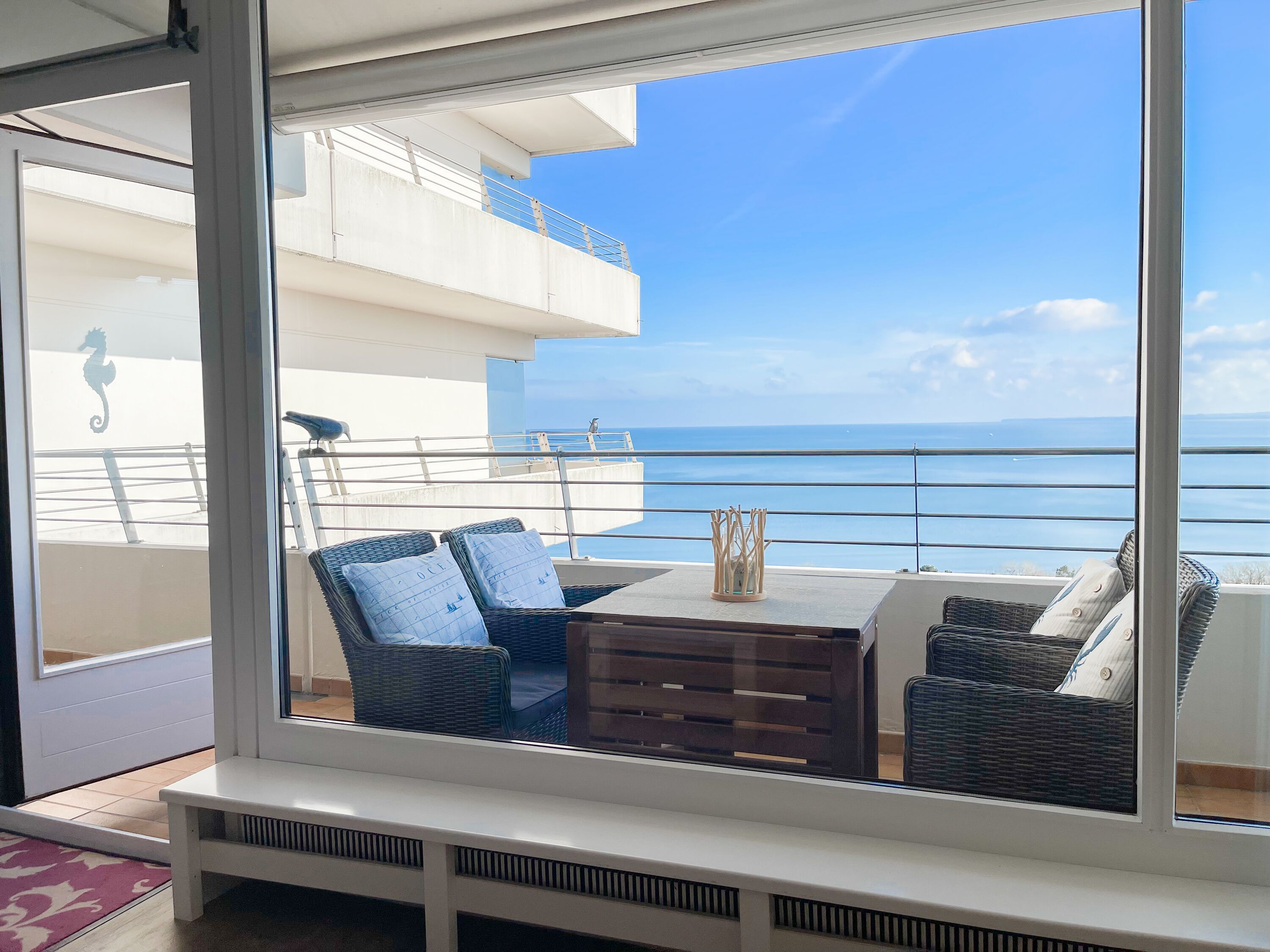 Die Ferienwohnung Traumblick bietet auf 75 qm hohen Wohnkomfort mit einer traumhaften Aussicht über die gesamte Lübecker Bucht. Der weitläufige Sonnenbalkon ist mit Gartenmöbeln, Sonnenstühlen und einer Markise ausgestattet und sowohl vom Wohnbereich als auch vom Schlafzimmer zu erreichen. Genießen Sie tagsüber das traumhafte Meerblickpanorama aus nahezu jedem Raum und bei Dunkelheit die besondere Atmosphäre der beleuchteten Lübecker Bucht. Der großzügige Wohn- Essbereich verfügt neben dem phantastischen Meerblick über eine hochwertige Einrichtung. Es steht ein gemütliches XL Sofa, TV und WLAN zur Verfügung sowie ein integriertes Schrankbett (160x200). Der anschließende Essbereich bietet ausreichend Platz für 4 Personen und die offene Einbauküche ist bestens ausgestattet. Das geräumige Schlafzimmer bietet ebenfalls einen wunderschönen Meerblick und ist mit einem Boxspringbett (180x200), einem weiteren TV sowie einem Kleiderschrank eingerichtet, der ausreichend Stauraum für die Urlaubsgarderobe bietet. Das moderne Bad verfügt über Waschtisch, Dusche und WC.