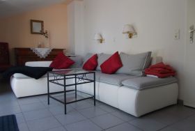 Das helle 2-Zimmer Appartement im Dachgeschoss bietet einen großen Wohn-/Schlafraum mit Doppelbett, Fernseher, DVD-Player, großem Kleiderschrank und Safe. Gegenüber befindet sich die integrierte Wohnküche mit einer Essecke. Das zweite Schlafzimmer mit exklusivem Balkon (z.T. Seeblick) ist ausgestattet mit einer ausziehbaren Schlafcouch. Die Liegefläche beträgt 130 x 200cm. Bettwäsche und Handtücher sind inklusive.