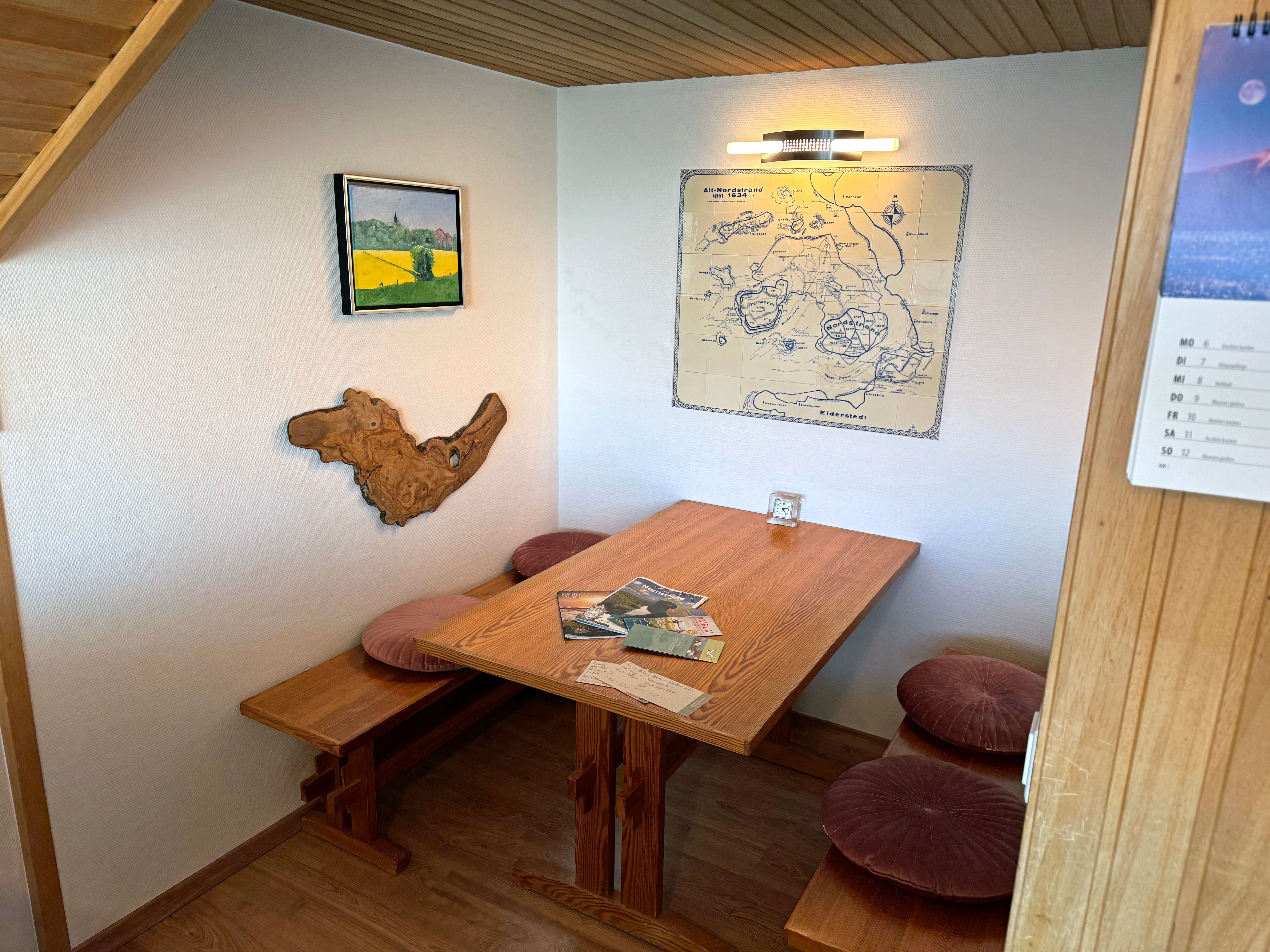 Ein besonderes Highlight ist der kleine Wintergarten. Hier können Sie die Aussicht auf den Teich, die Nachbarschaft und die malerische Landschaft Nordstrands entspannt genießen.