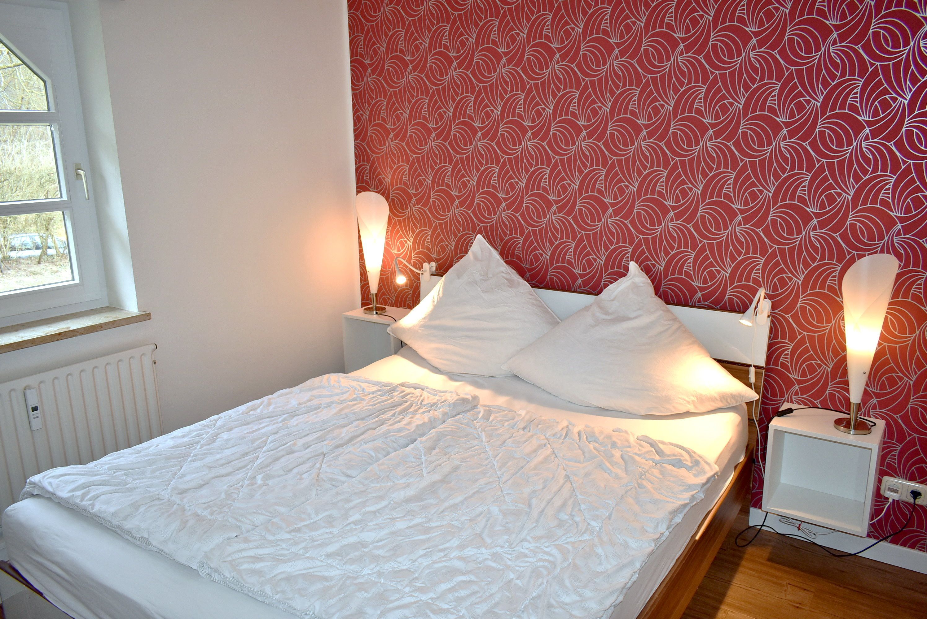 Schlafzimmer 1: Doppelbett 2,00 x 1,60 m, Kleiderschrank, Stummer Diener, Wäscheständer